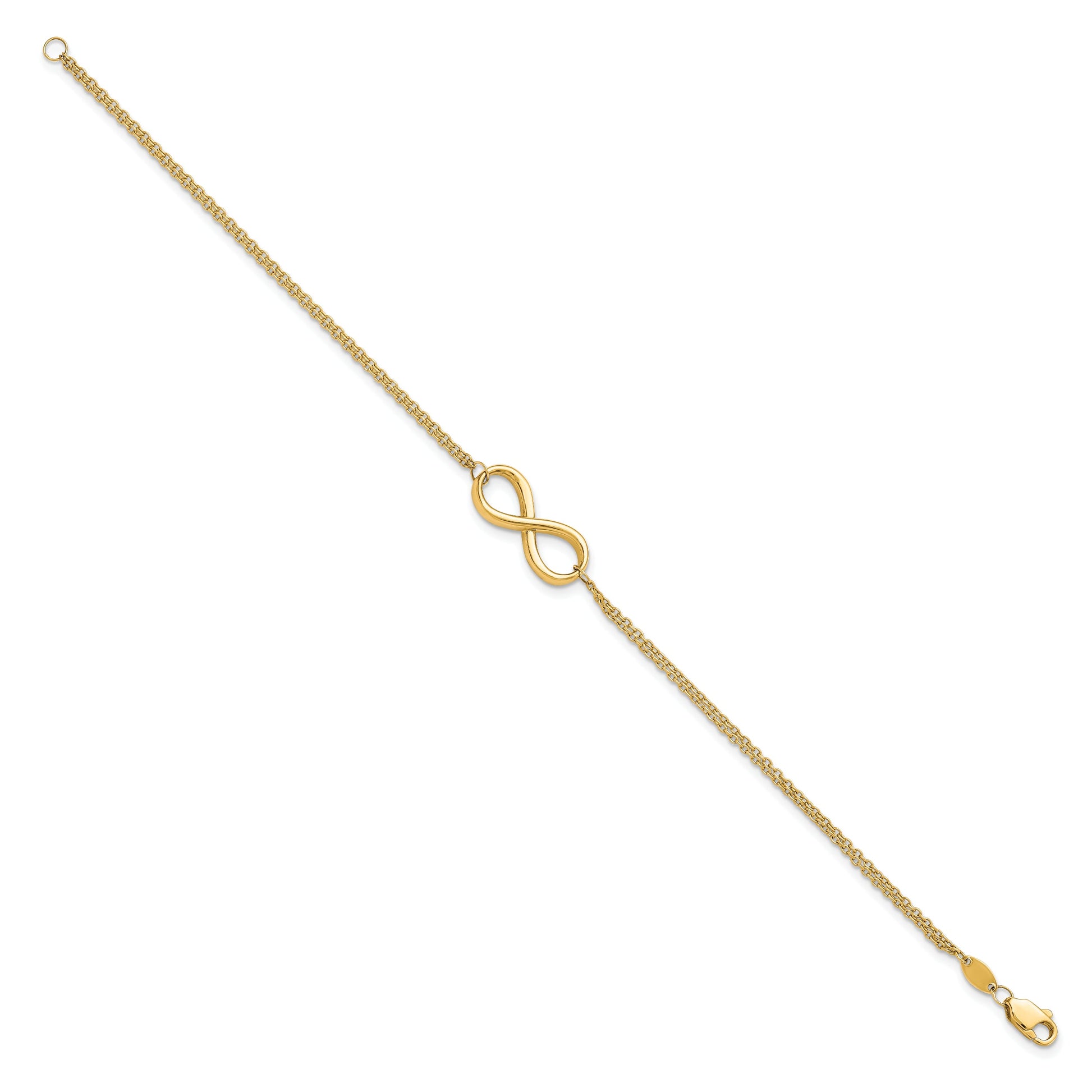 The 7.5 Inch 10K Polished Infinity Bracelet exudes timeless elegance with its sleek design. Crafted from 10K yellow gold, this bracelet shines with a polished finish, ensuring it catches every eye. Measuring 7.5 inches in length and 2 mm in width, it offers a delicate yet sturdy look. The infinity charm adds a meaningful touch, symbolizing endless love. With a secure lobster clasp, it stays in place all day. Plus, it comes with a lifetime guarantee for your peace of mind. The 7.5 Inch 10K Polished Infinity Bracelet is a must-have for any fine jewelry collection.