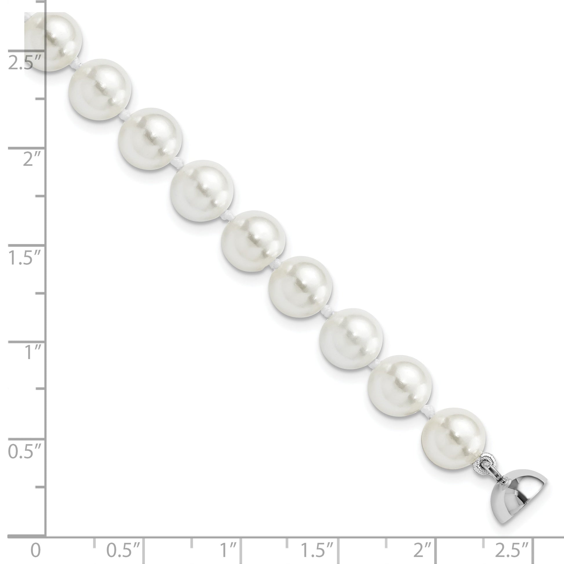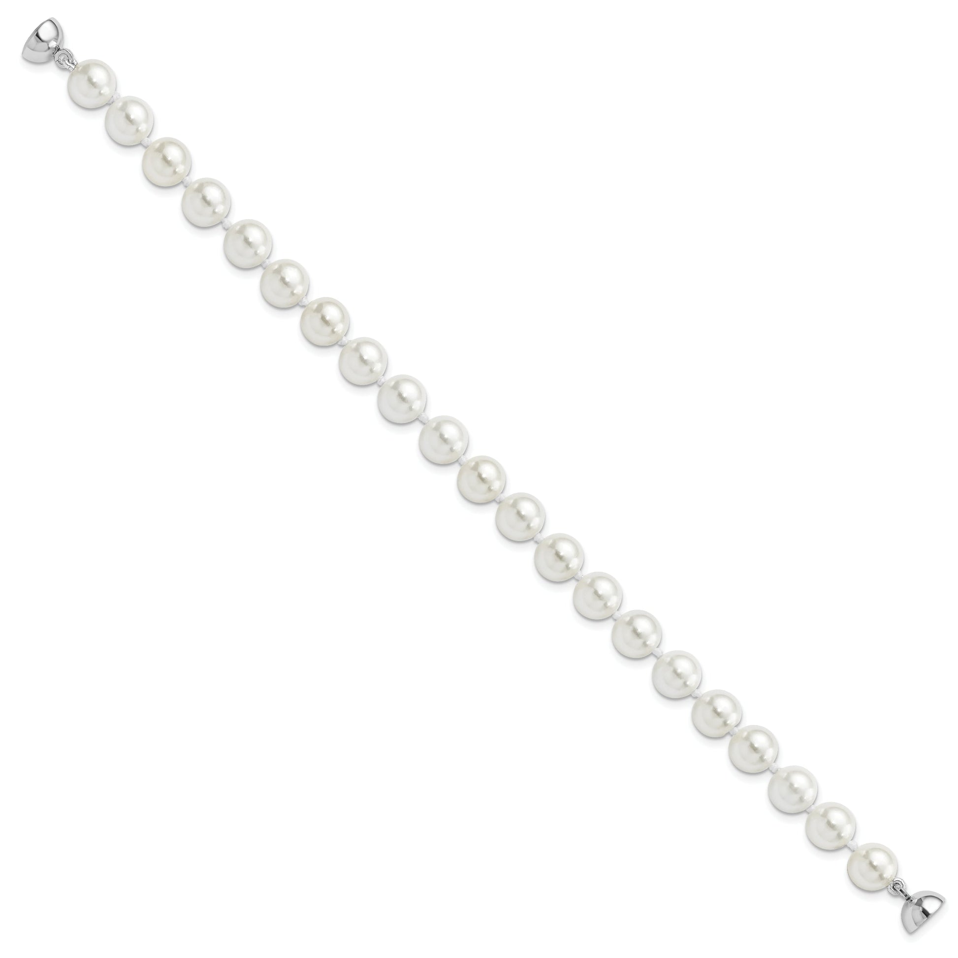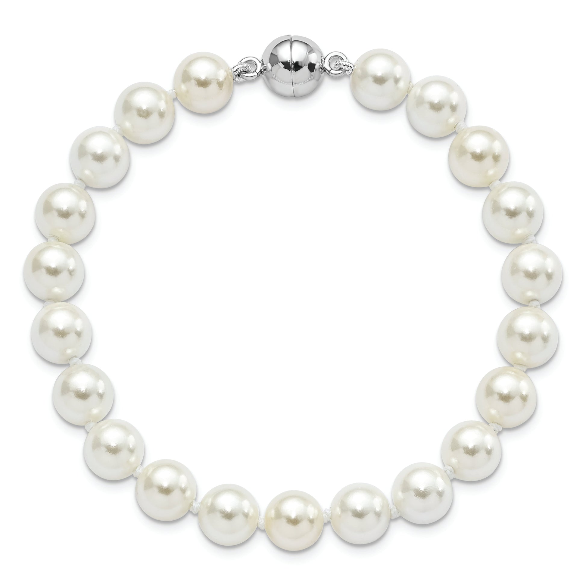Introducing the 7.5 Inch Majestic Sterling Silver Rhodium-Plated Bracelet, crafted for those who seek elegance and charm. This bracelet showcases 8-9mm white imitation shell pearls, hand-knotted for added sophistication. Made from pure 925 sterling silver, each pearl gleams under a rhodium-plated layer, ensuring lasting shine. The bracelet secures with a magnetic clasp, offering convenience without sacrificing style. Presented in a gift pouch, it makes a thoughtful present. Embrace the timeless allure of the 7.5 Inch Majestic Sterling Silver Rhodium-Plated Bracelet and wear it with confidence for any occasion.