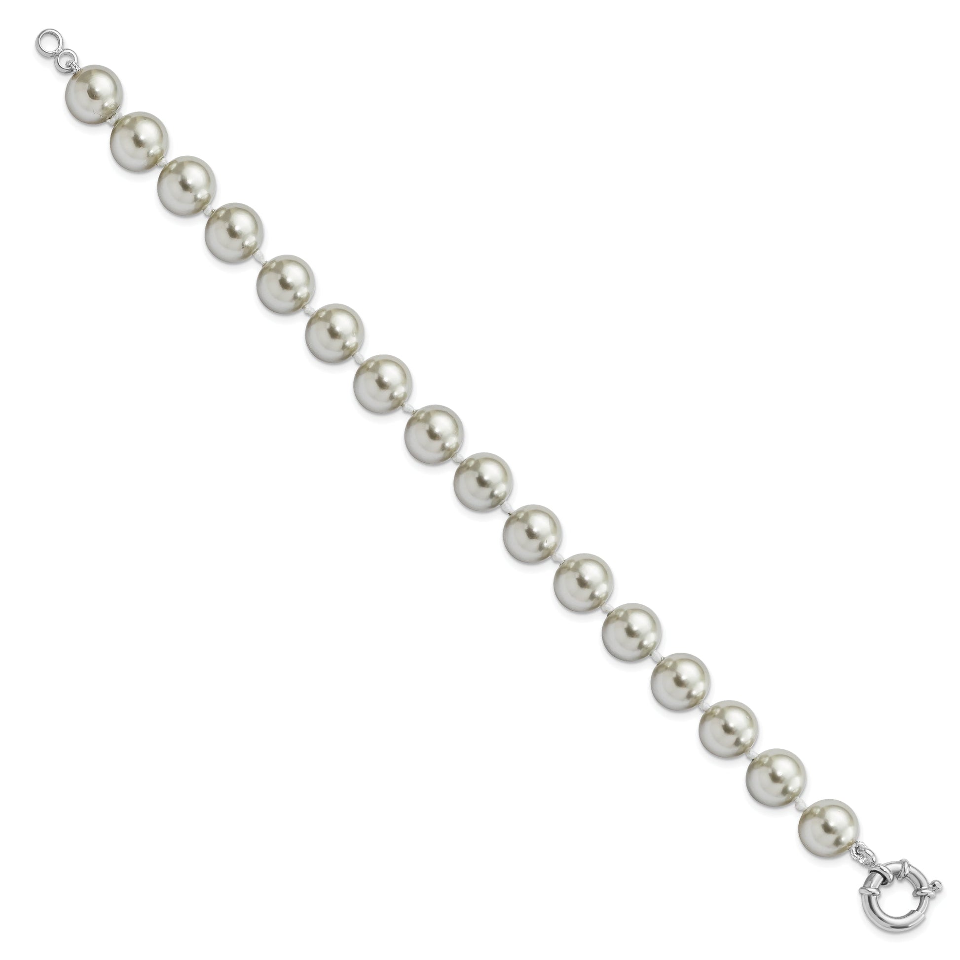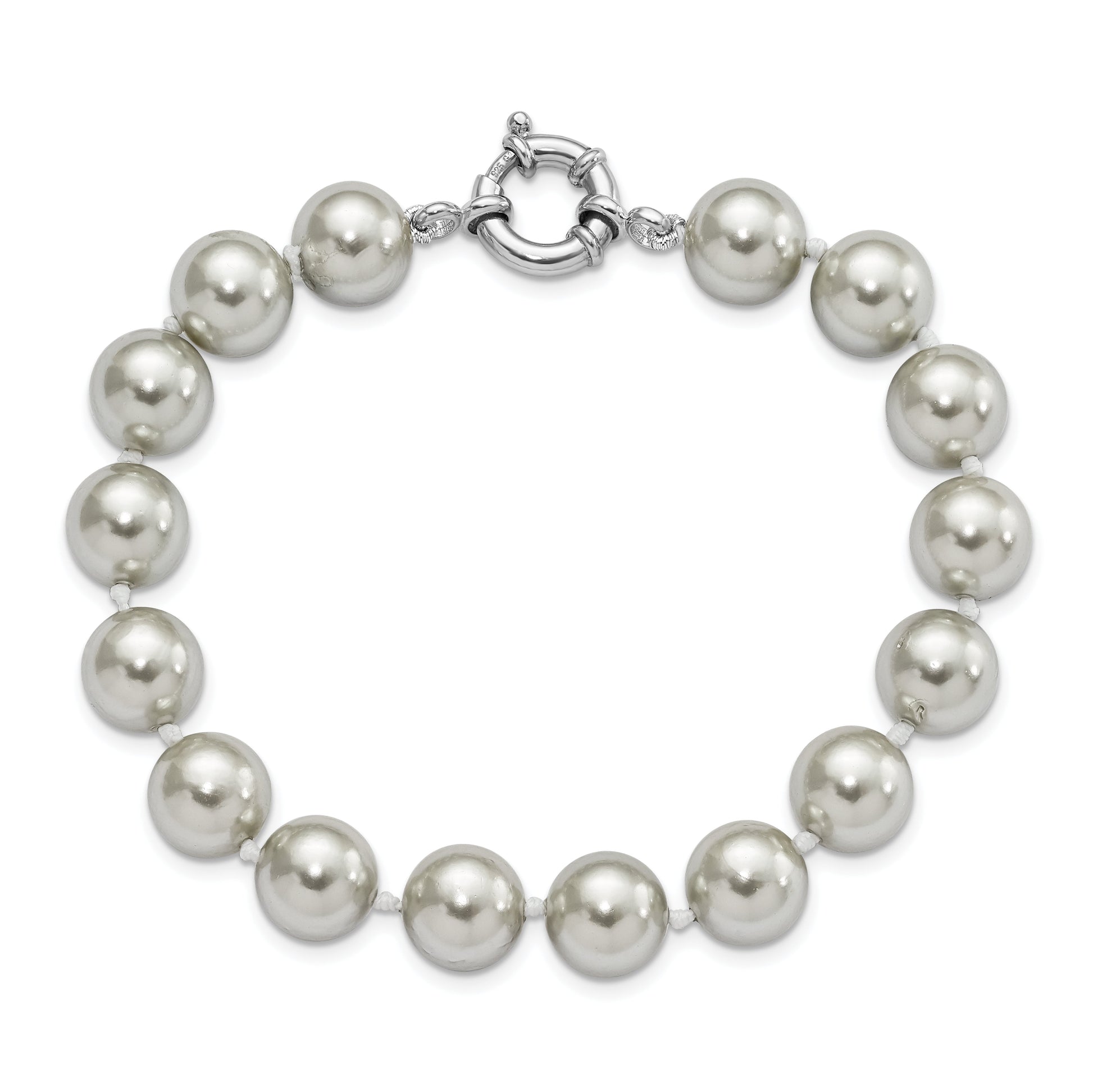 The 7.5 Inch Majestik Sterling Silver Rhodium-Plated Bracelet exudes elegance and sophistication. Crafted in sterling silver with a gleaming rhodium plate, this bracelet holds rich, gray imitation shell pearls. Each pearl, hand-knotted expertly, measures between 10 and 11mm, rendering the piece as a beautiful accessory on the wrist. The pearls present a natural sheen, capturing the allure of luxury, yet maintaining an understated charm. With its solid cast construction, it promises lasting allure and comfort. This Majestik bracelet is perfect for dressing up any outfit and comes in a gift pouch, ready to delight.