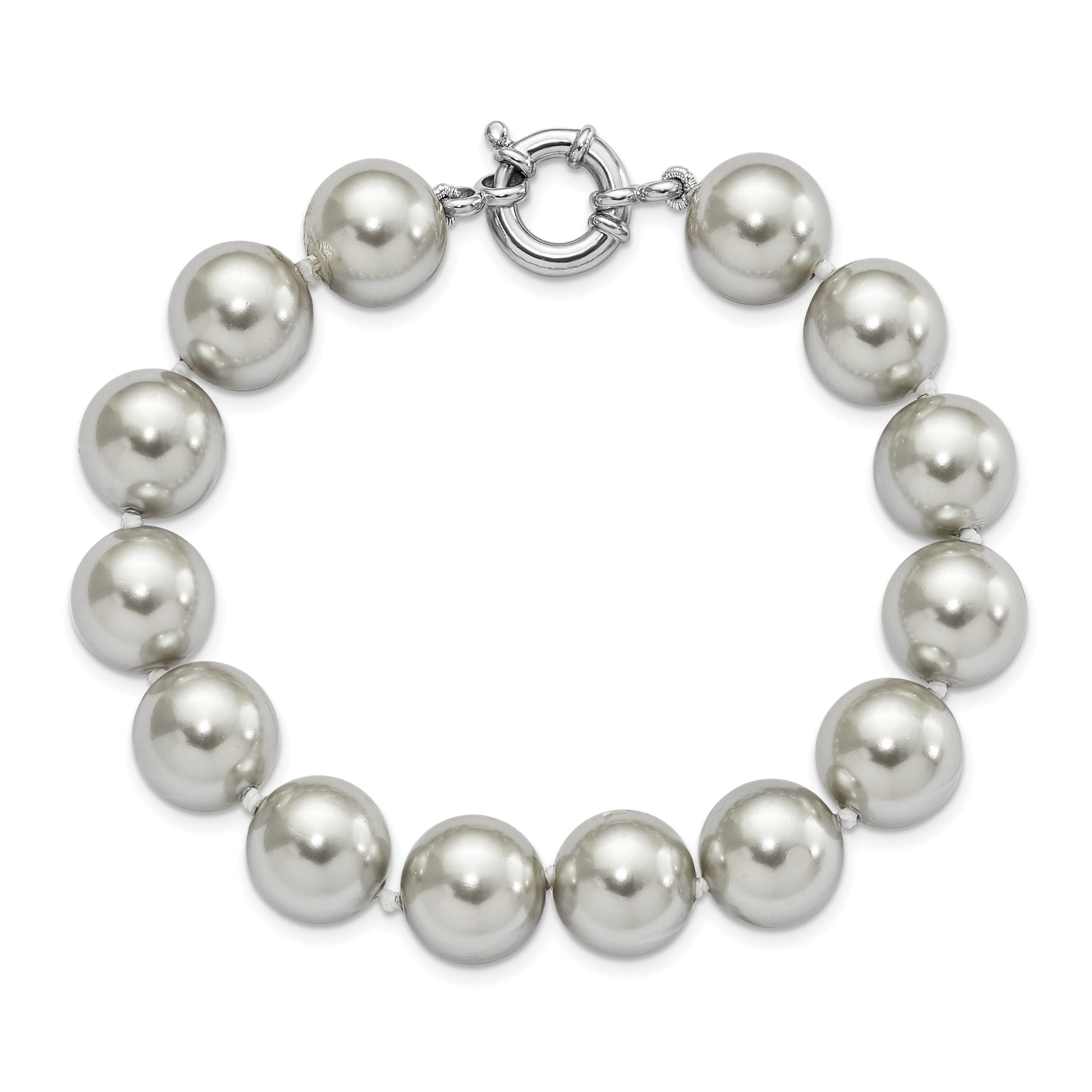 Get ready to dazzle with the 7.5 Inch Majestik Sterling Silver Rhodium-Plated Grey Imitation Shell Pearl Hand-Knotted Bracelet. This stunning piece combines high-quality 925 sterling silver with elegant grey shell pearls, each carefully hand-knotted for durability. The 12-13mm pearls boast a sophisticated silver tone thanks to their rhodium plating, making them a standout feature. At 7.5 inches, it offers a comfortable fit for everyday elegance. Housed in a stylish gift pouch, the Majestik Bracelet is more than just jewelry — it's a statement piece set to enhance any outfit.