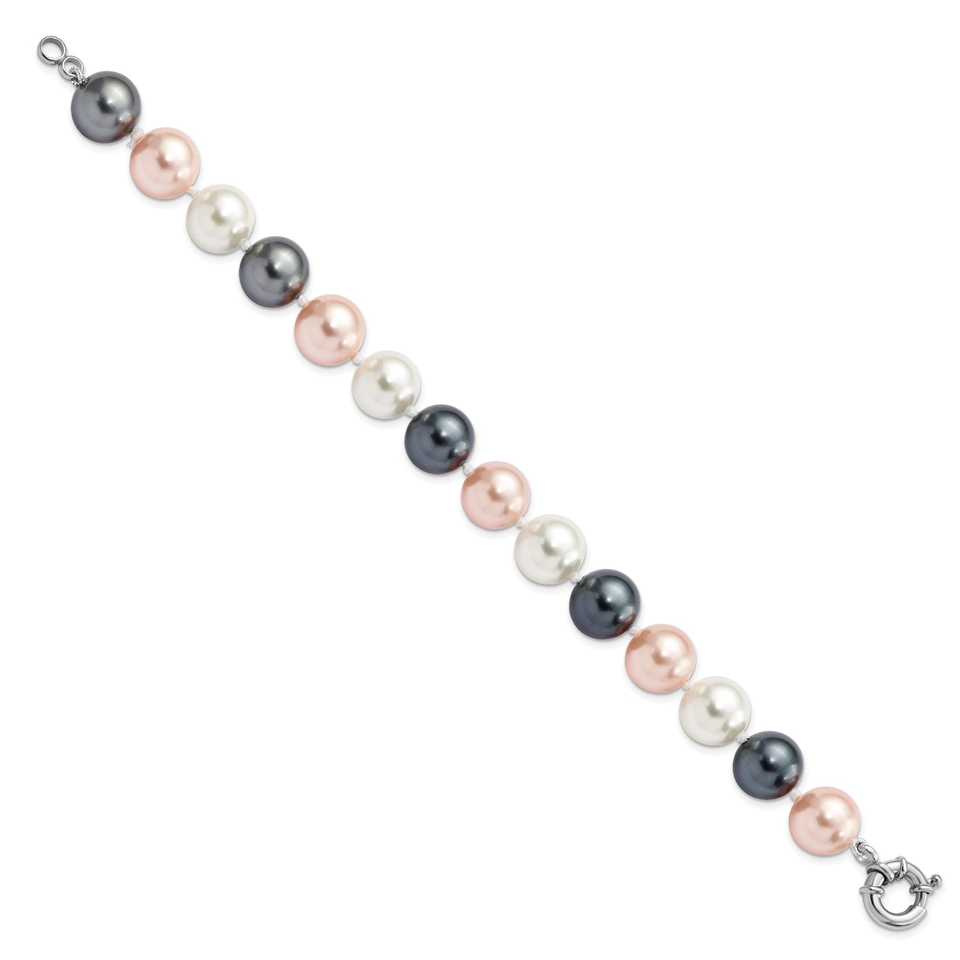 The Majestik Sterling Silver Rhodium-Plated Bracelet is a timeless piece, perfect for adding elegance to your outfit. Made from 925 sterling silver, this bracelet features polished, rhodium-plated links in a classic 7.5-inch length. Hand-knotted with multi-color imitation shell pearls sized between 12-13mm, it offers a stunning array of colors reminiscent of the ocean. The secure spring ring clasp ensures it stays in place all day. The intricate craftsmanship makes it a unique addition to any jewelry collection. Each Majestik Sterling Silver Rhodium-Plated Bracelet arrives in a gift pouch, perfect for gifting or personal use.