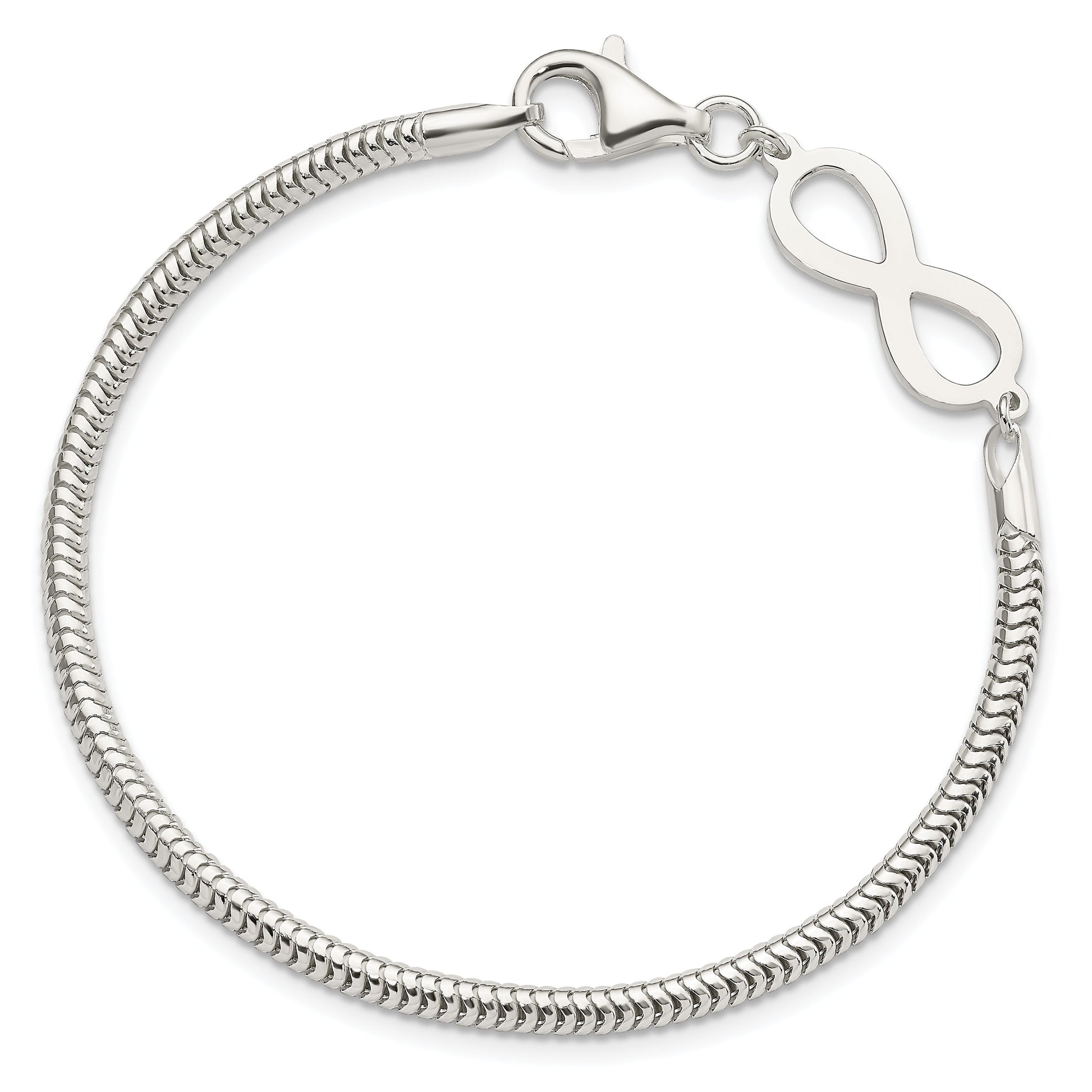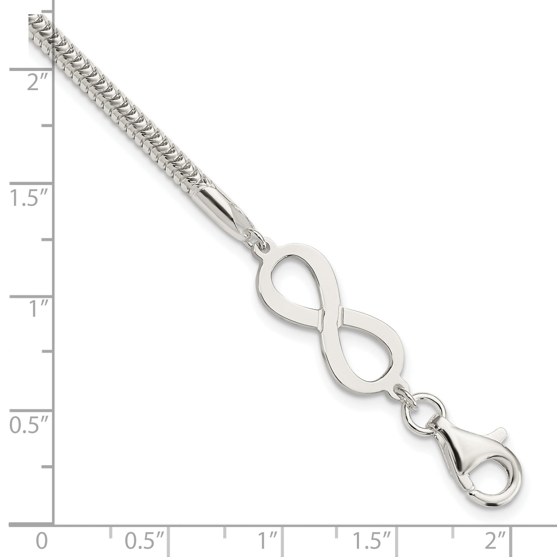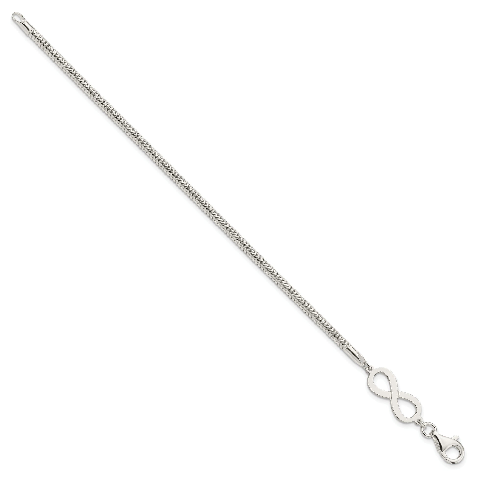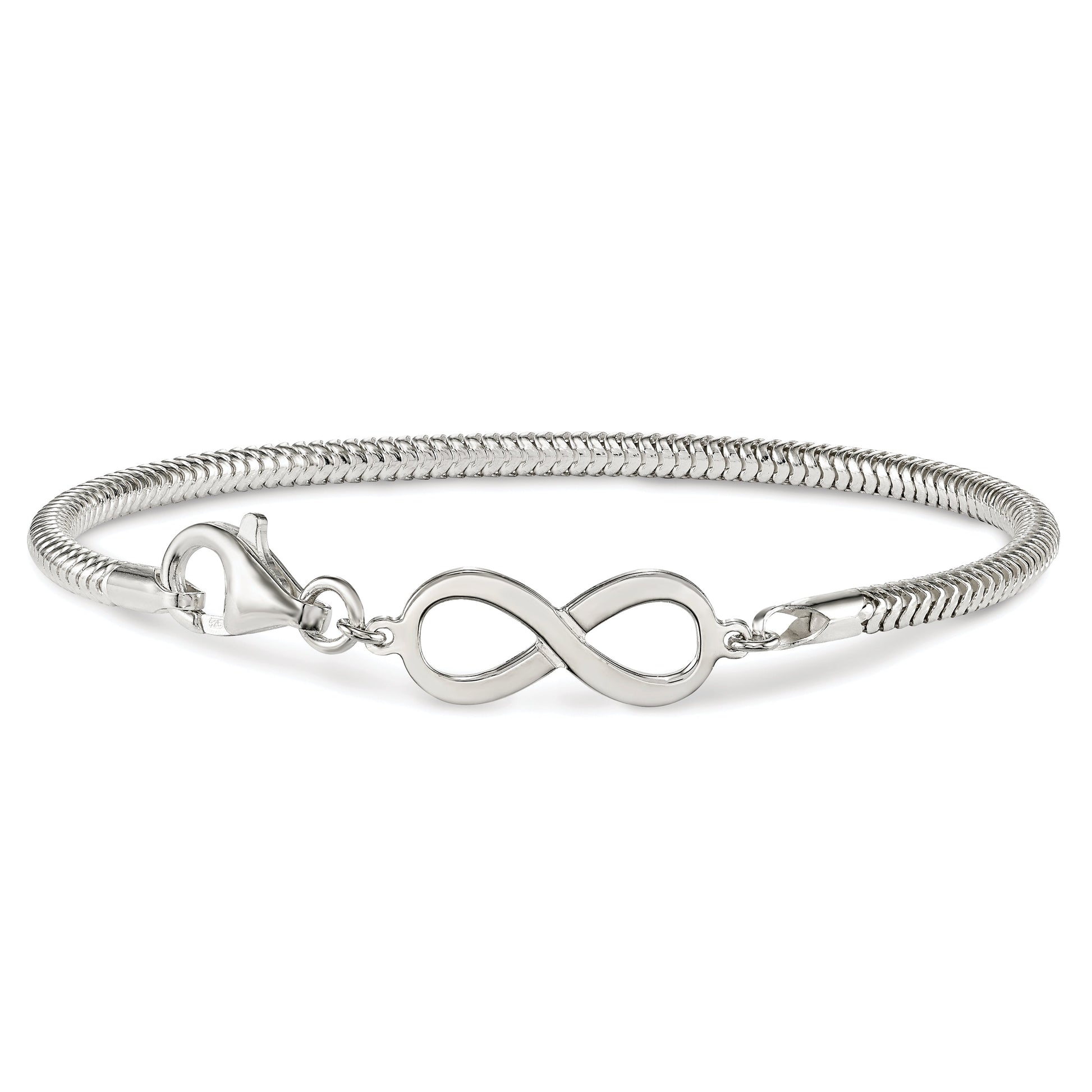 The 7.5 Inch Sterling Silver Infinity Symbol Bracelet merges elegance with meaning. This piece features a gleaming polished finish and is crafted from 925 sterling silver. Its dainty, feminine design is accentuated by the infinity symbol, making it a meaningful gift or personal statement. The bracelet measures 7.5 inches with a 3 mm width, offering a comfortable fit. The lobster clasp ensures secure wear, while the anti-tarnish coating keeps it dazzling effortlessly. Perfect for every occasion, the timeless 7.5 Inch Sterling Silver Infinity Symbol Bracelet adds a touch of sophistication to any outfit.