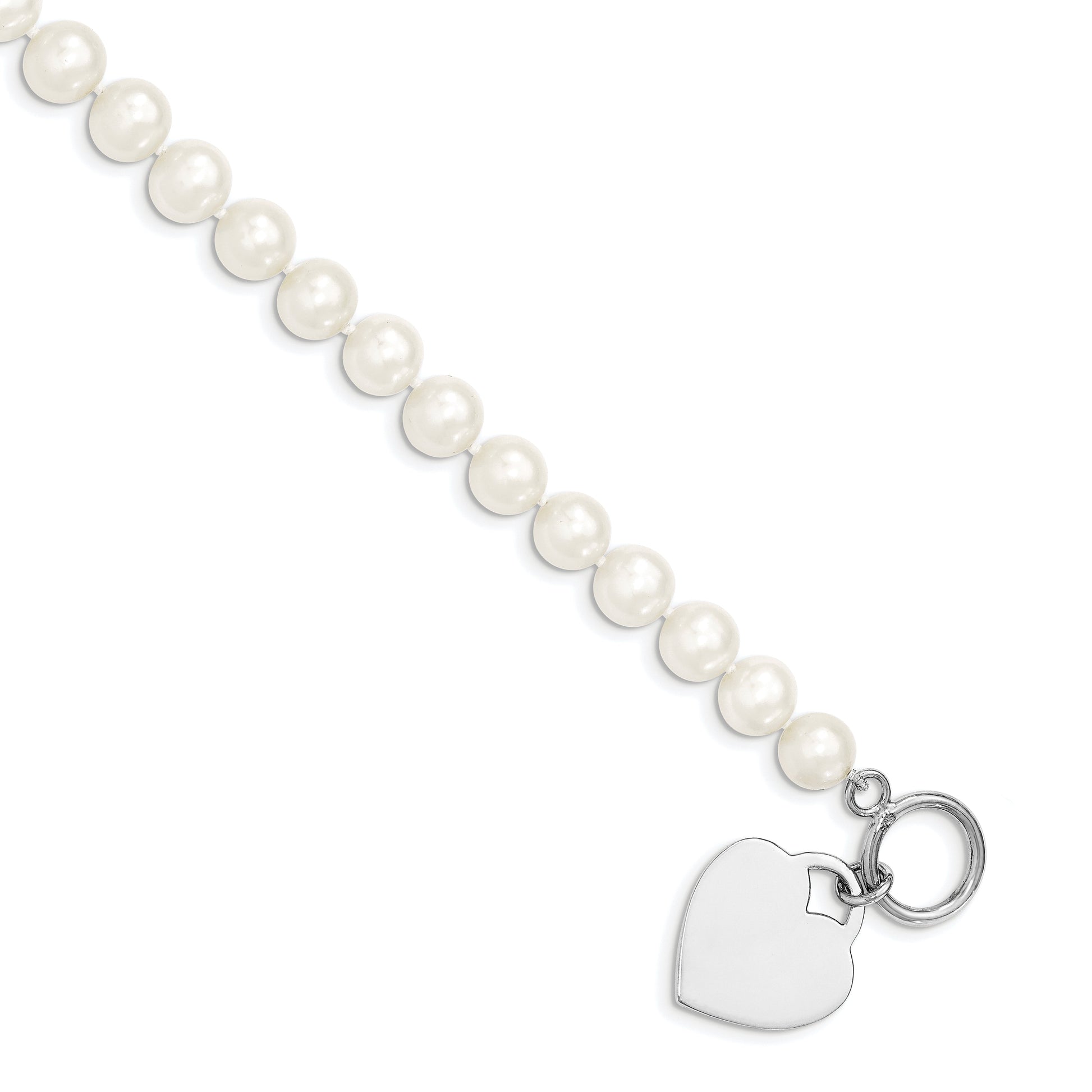 The 7.5 Inch Sterling Silver Rhodium 8-9mm White Freshwater Cultured Pearl Heart Toggle Bracelet is a blend of elegance and style. Crafted with polished sterling silver, this bracelet flaunts 8-9mm near-round white pearls, subtly enhanced through bleaching. Each pearl is a product of meticulous freshwater cultivation. The rhodium plating adds a lustrous shine, ensuring long-lasting brightness. With a sturdy heart-shaped toggle clasp, it promises ease of wear and security. The 7.5-inch length makes it perfect for most wrists, offering both beauty and comfort. Ideal for women's jewelry, this exquisite bracelet complements any wardrobe with sophistication.