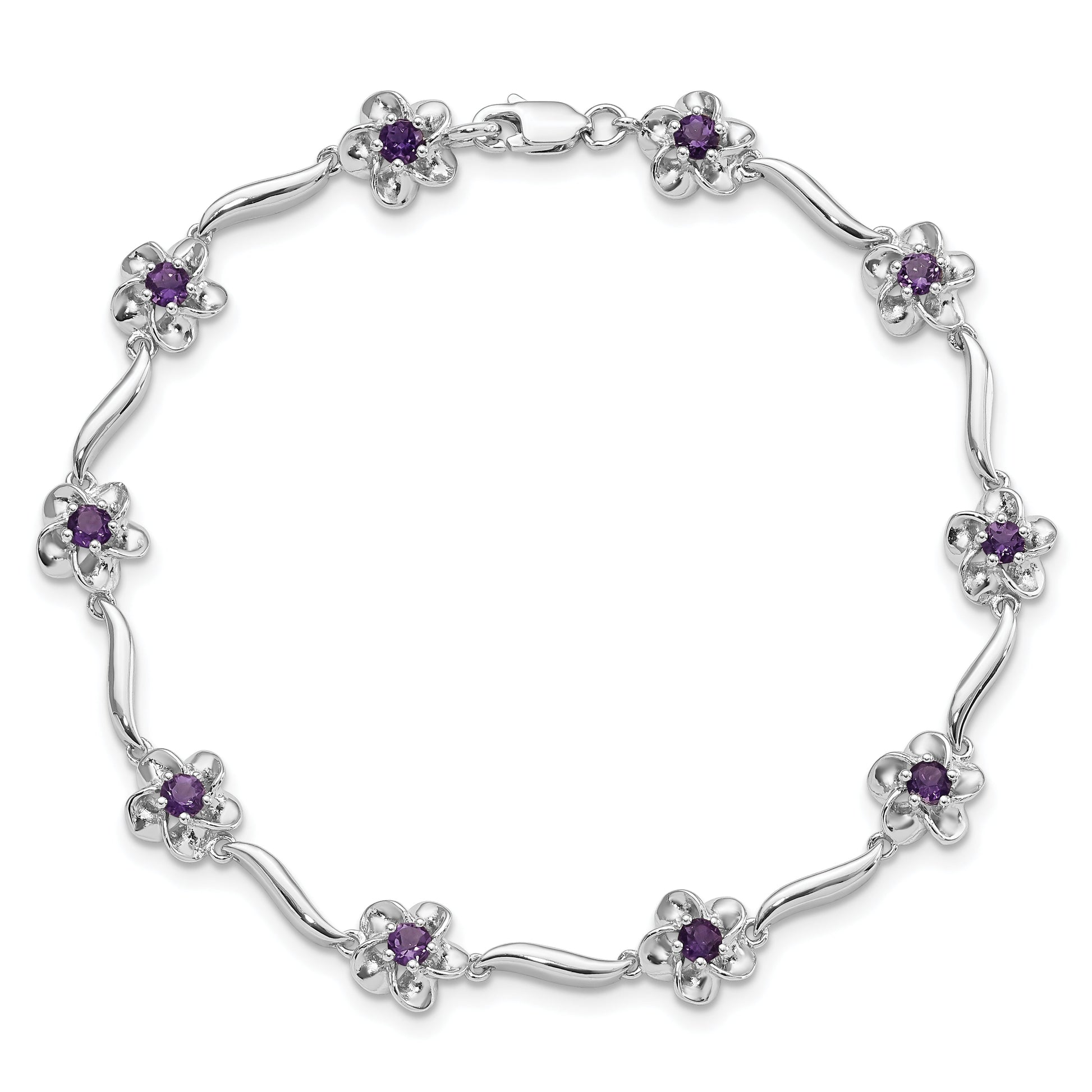 Discover the exquisite elegance of the 7.5 Inch Sterling Silver Rhodium-Plated Floral Amethyst Bracelet. This handcrafted gem features rich, purple amethysts that sparkle against a polished sterling silver backdrop. A rhodium plating enhances its shine while guarding against tarnish. With a secure lobster clasp, this bracelet ensures durability and style, making it perfect for any occasion. Its intricate, floral design showcases a masterful blend of craftsmanship and sophistication. Celebrate February birthdays or simply add a touch of class to your ensemble with this stunning floral amethyst bracelet. Embrace timeless beauty with every wear.