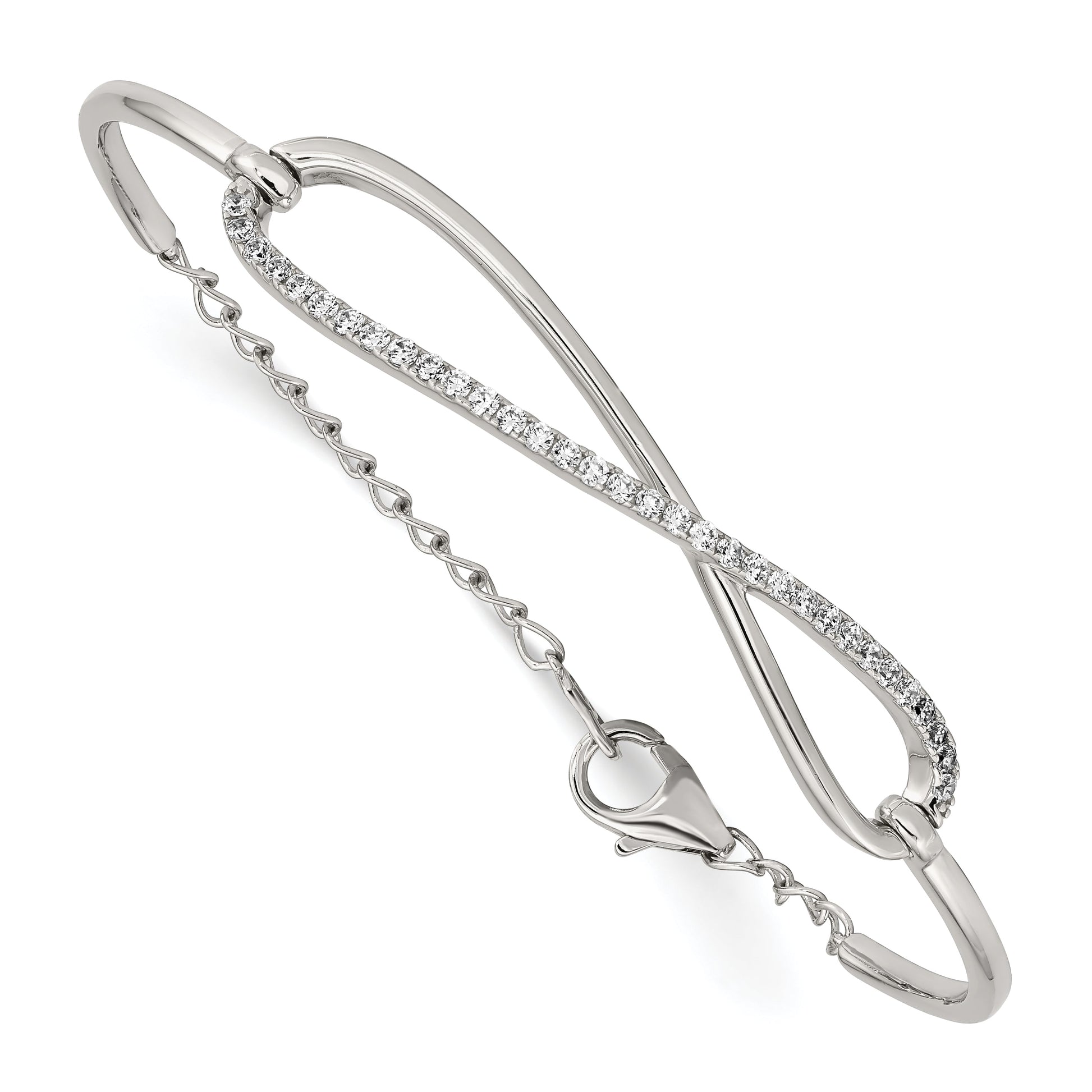 Discover the elegance of the 7-Inch Sterling Shimmer Infinity Symbol Bracelet adorned with 33 Cubic Zirconia stones. Crafted in polished sterling silver with a rhodium plating, this bracelet offers an eternal design with an infinity motif, making it a timeless addition to any jewelry collection. Each stone rests securely in a four-prong setting, enhancing the bracelet's sparkle and sophistication. The piece features a reliable lobster clasp for easy wear and removal. Perfectly crafted, this bracelet adds a touch of grace and is an ideal gift for any occasion. Embrace the charm of the 7-Inch Sterling Shimmer Infinity Symbol Bracelet today.