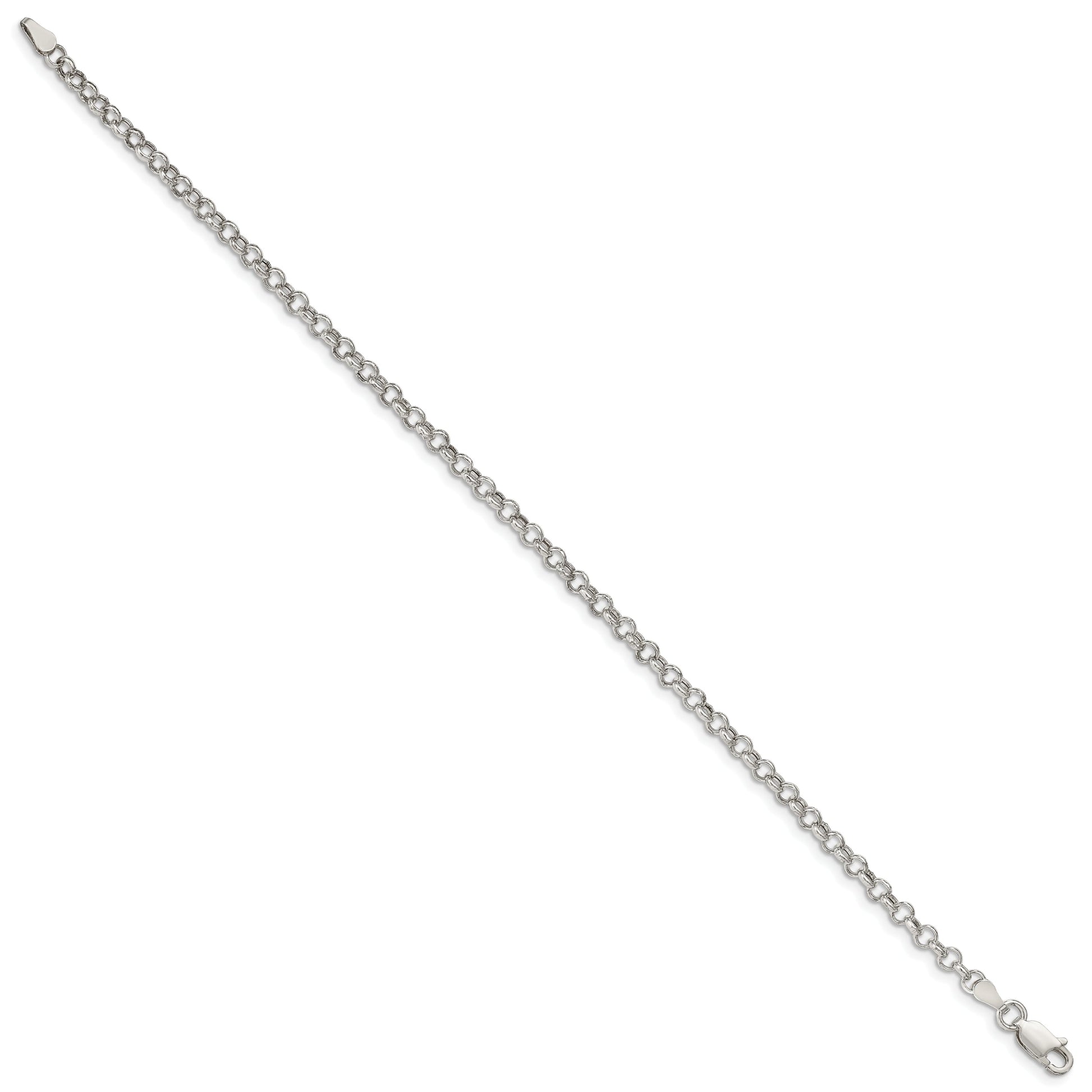 The 7 Inch Sterling Silver 3mm Semi-Solid Rolo Chain is a beautiful piece of jewelry that graces your wrist with style. Crafted from high-quality 925 sterling silver, this bracelet offers a polished finish that catches the light brilliantly. The rolo chain design, with its 3mm width, adds a touch of elegance without overwhelming your wrist. It’s machine-made for precise detailing, ensuring each link is perfectly shaped. The lobster clasp ensures secure closure, while the anti-tarnish coating keeps it looking new. This versatile piece is ideal for any woman who values both elegance and durability.