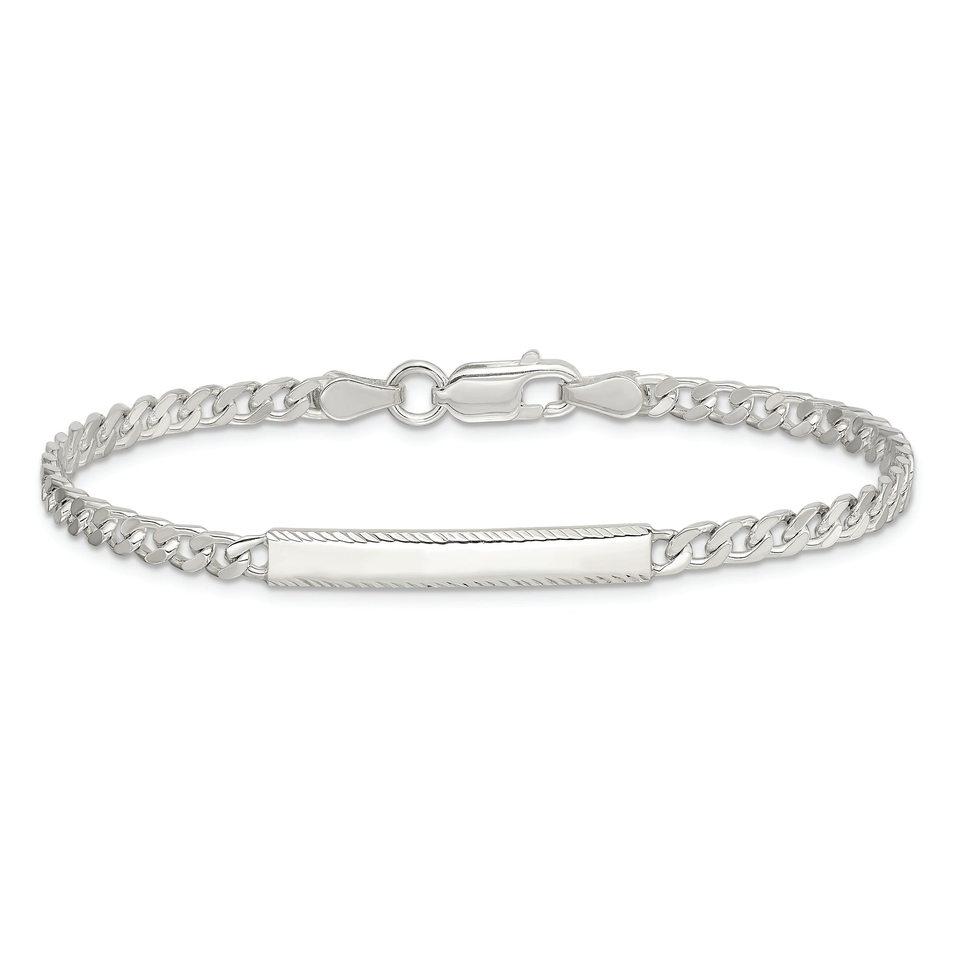 The 7-Inch Sterling Silver Diamond-Cut Engravable Curb Link ID Bracelet makes any outfit shine. Crafted from 925 sterling silver, this bracelet features a polished finish and intricate diamond-cut detailing, giving it that extra sparkle. Its curb link chain, measuring 7 inches in length and 3 millimeters in width, ensures a secure fit. Fastened with a lobster clasp, this bracelet stays in place and is designed for everyday wear. Perfectly engravable, it offers a personalized touch that makes it unique to you. This versatile piece elevates your jewelry collection effortlessly.