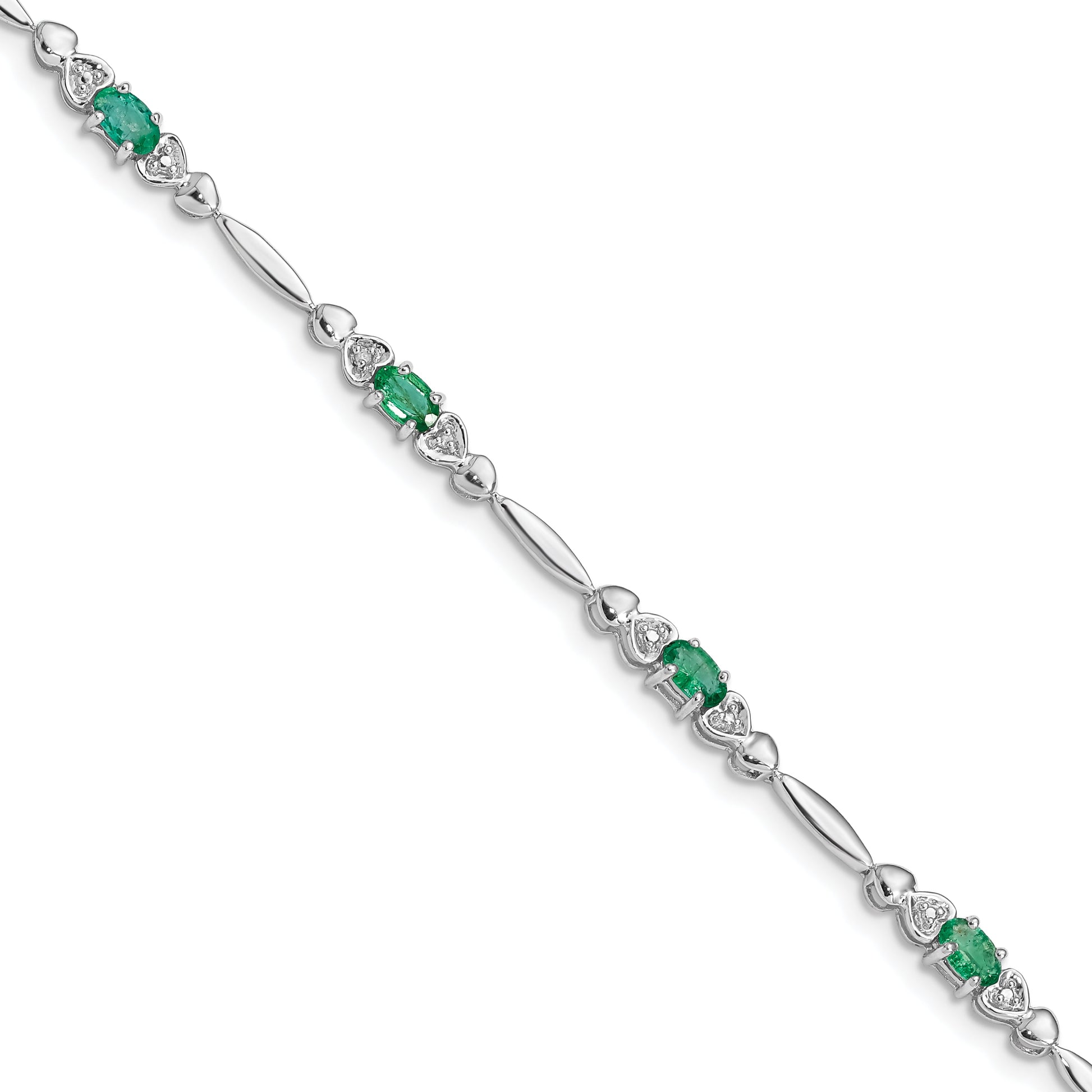 7 Inch Sterling Silver Rhodium-Plated Emerald And Diamond Bracelet