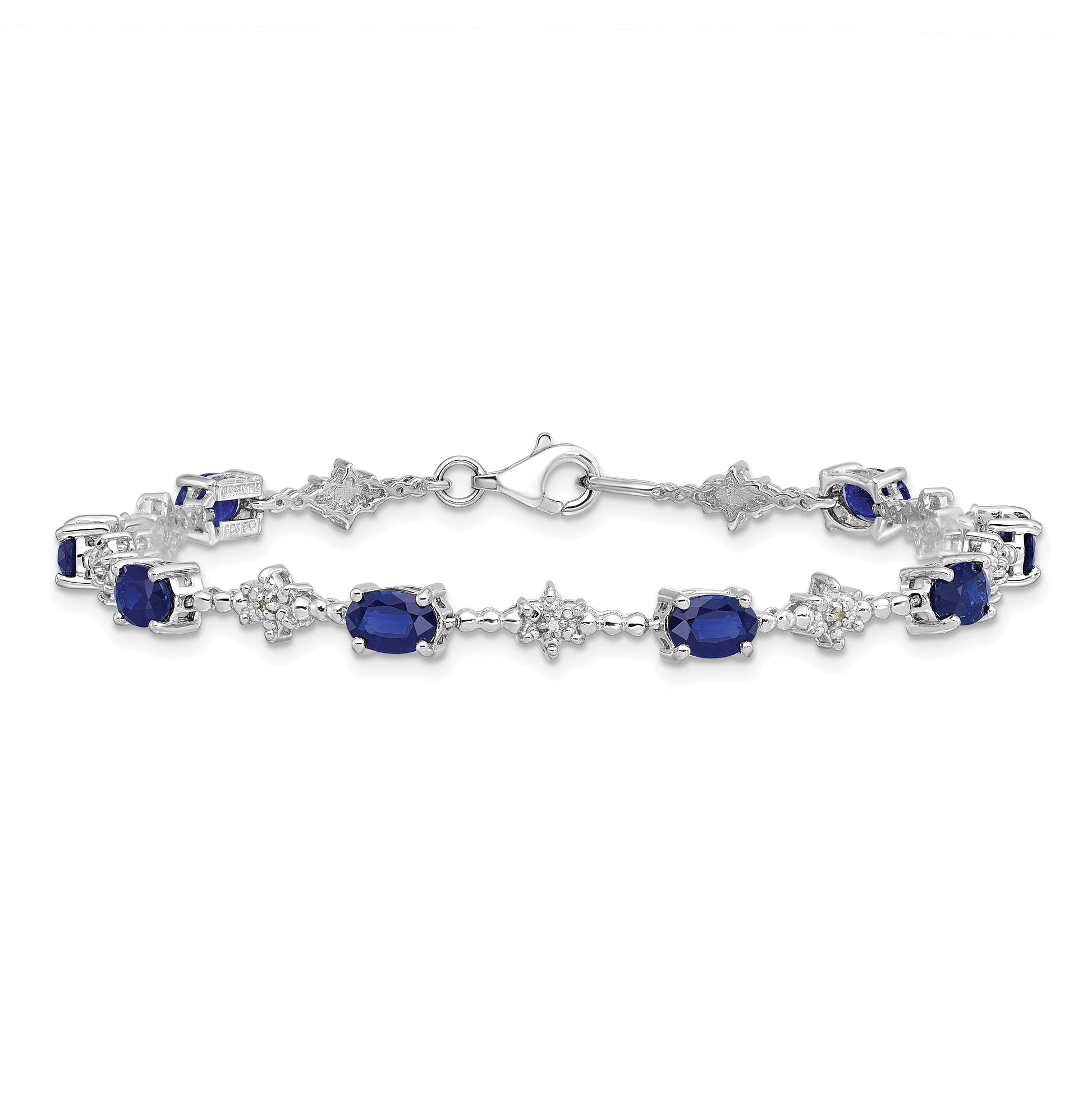 The radiant 7-Inch Sterling Silver Rhodium-Plated Sapphire and Diamond Bracelet is a beautiful statement piece. Crafted from sterling silver with a polished finish, this bracelet exudes elegance with a touch of modern style. Stunning blue sapphires totaling 0.54 carats and delicate diamonds add sparkle, arranged in a secure prong setting. The bracelet's 7-inch length and 4 mm width ensure a comfortable fit, with a fancy lobster clasp for easy wear. Rhodium plating enhances its shine, while natural stones make it unique. Dazzle with the Sterling Silver Rhodium-Plated Sapphire and Diamond Bracelet, perfect for any occasion.