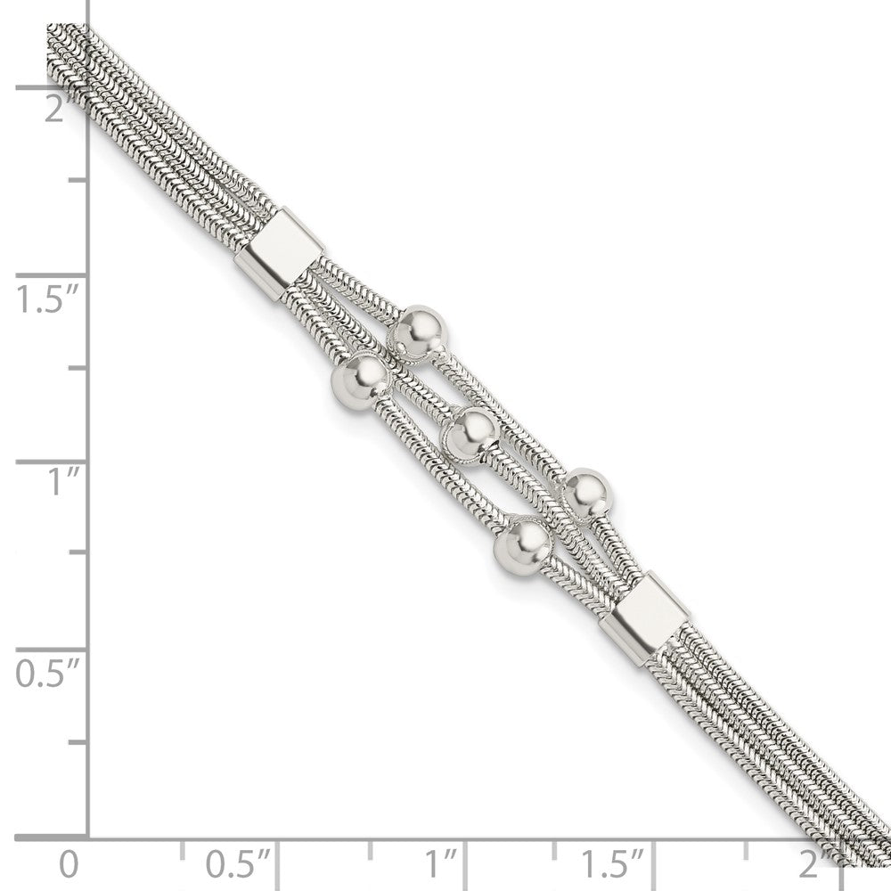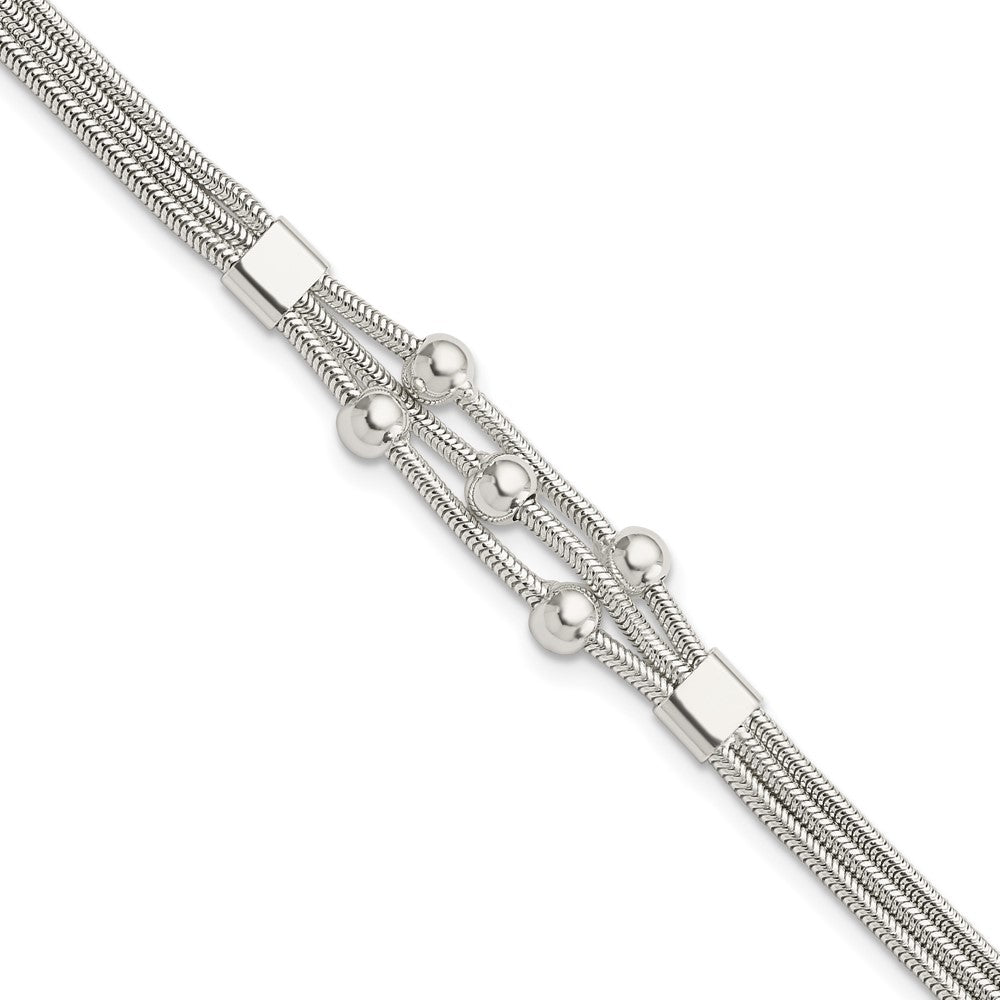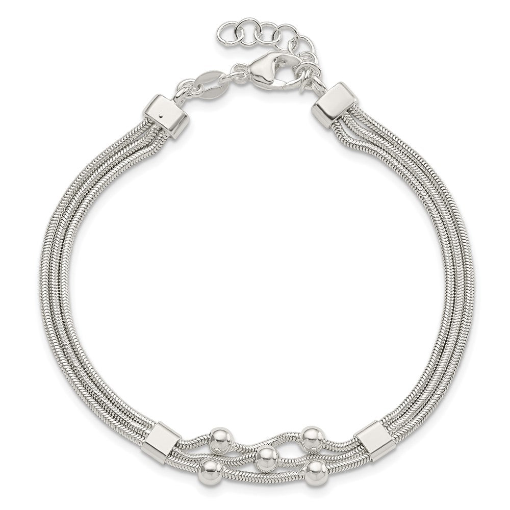 8.25 Inch Sterling Silver Polished Beaded 3-Strand W/ 1In Ext. Bracelet