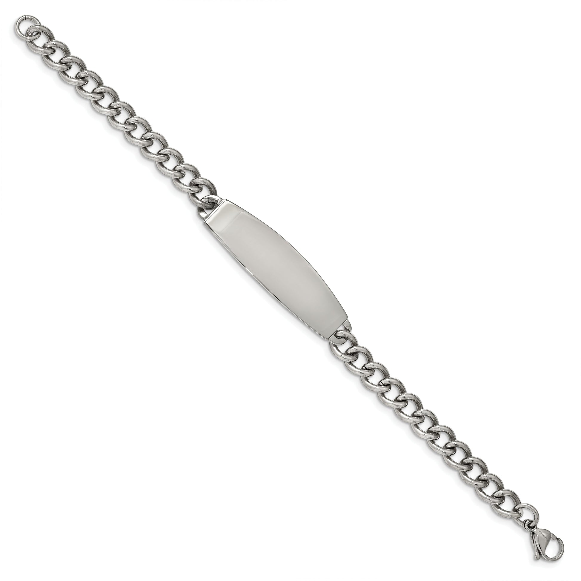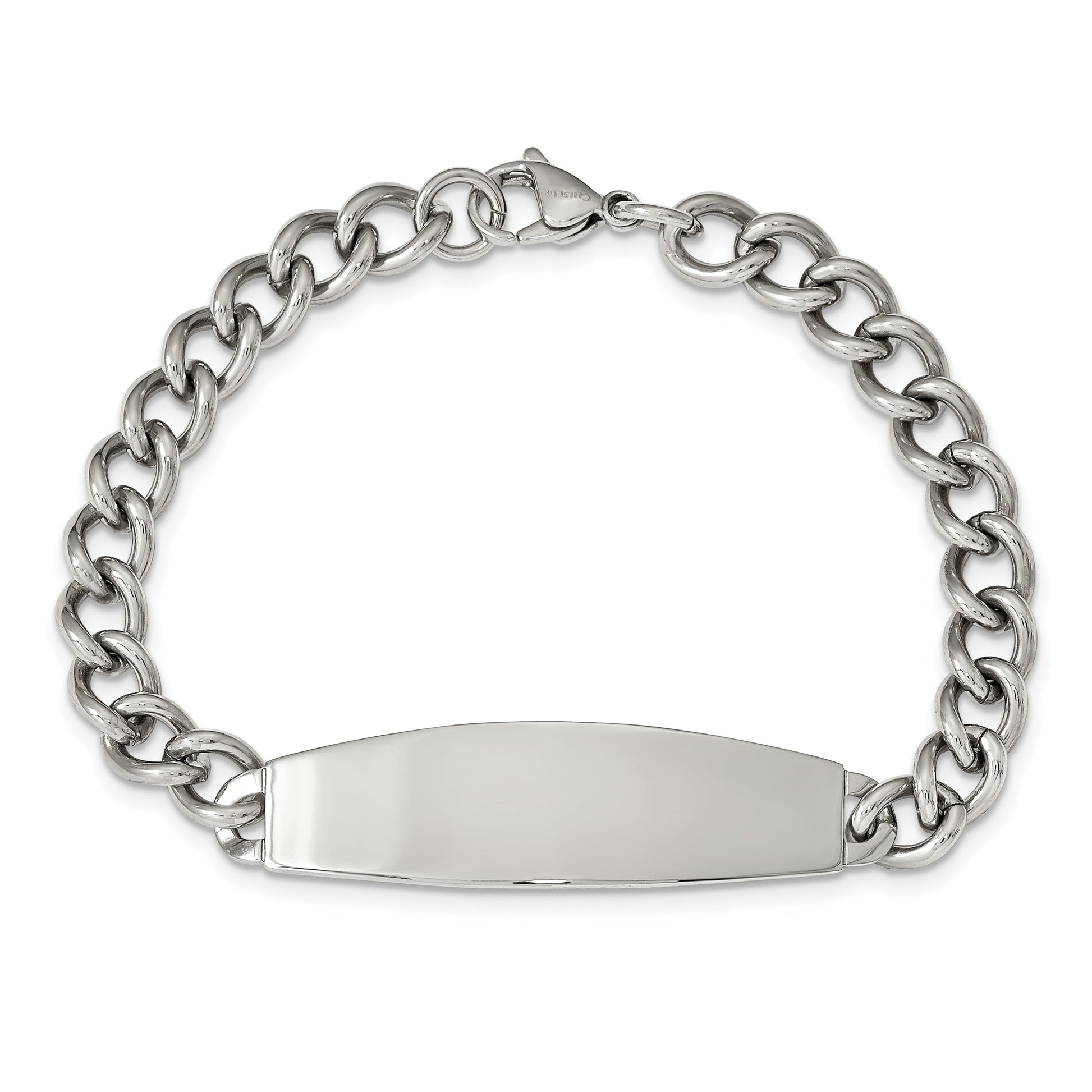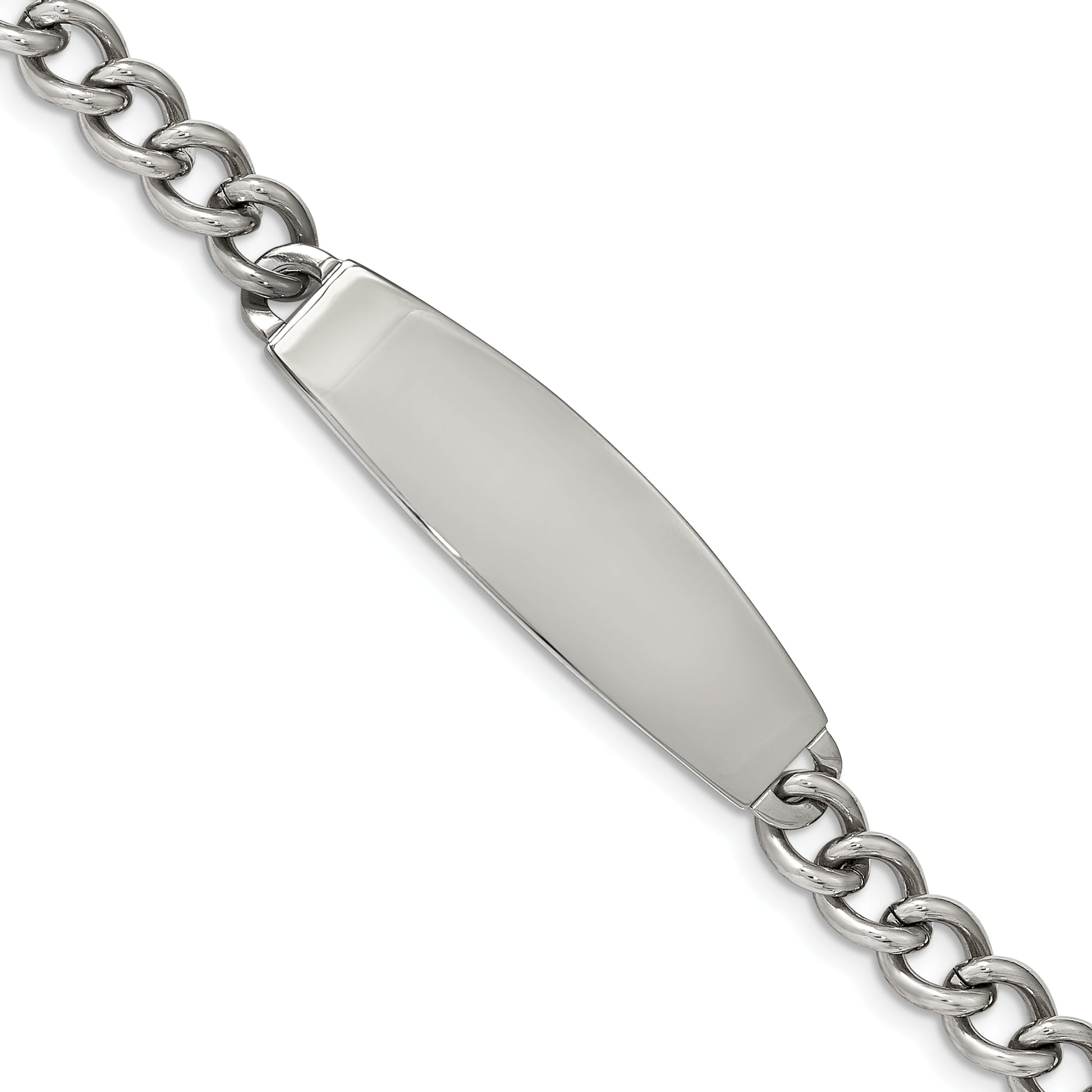The 8.75 Inch Chisel Stainless Steel Polished Curb Chain ID Bracelet makes a stylish statement on any wrist. Its shiny, polished finish radiates elegance, while the durable 13 mm width ensures it stands out. Designed in stainless steel, this bracelet offers strength and resilience, making it perfect for daily wear. The 8.25-inch curb chain comes with a fancy lobster clasp, adding a touch of sophistication. Ideal as a gift, this engravable piece is delivered in a classy gift box. The 8.75 Inch Chisel Bracelet combines fashion with function for the modern man.