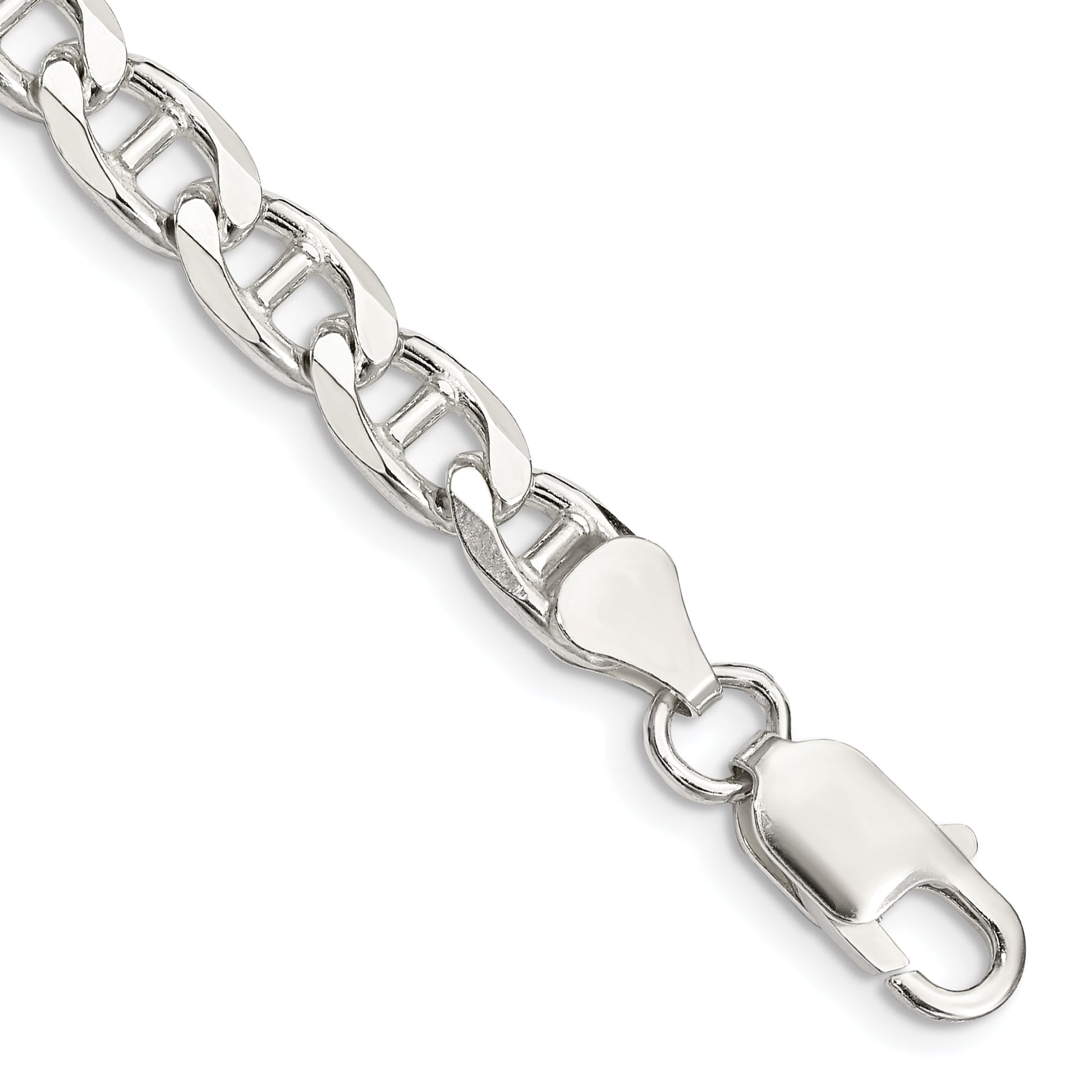 The 8 Inch Sterling Silver 6.5mm D/C Flat Anchor Curb Chain is a standout piece for the modern man. Crafted from pure 925 sterling silver with a polished finish, this bold bracelet is designed to add a touch of class to any outfit. Measuring 8 inches in length and featuring a sturdy 6.5 mm width, it's durable and stylish. The anti-tarnish coating ensures long-lasting shine, while the lobster clasp secures everything in place. Ideal for both formal and casual occasions, this sterling silver chain is the perfect accessory for those who value timeless elegance.