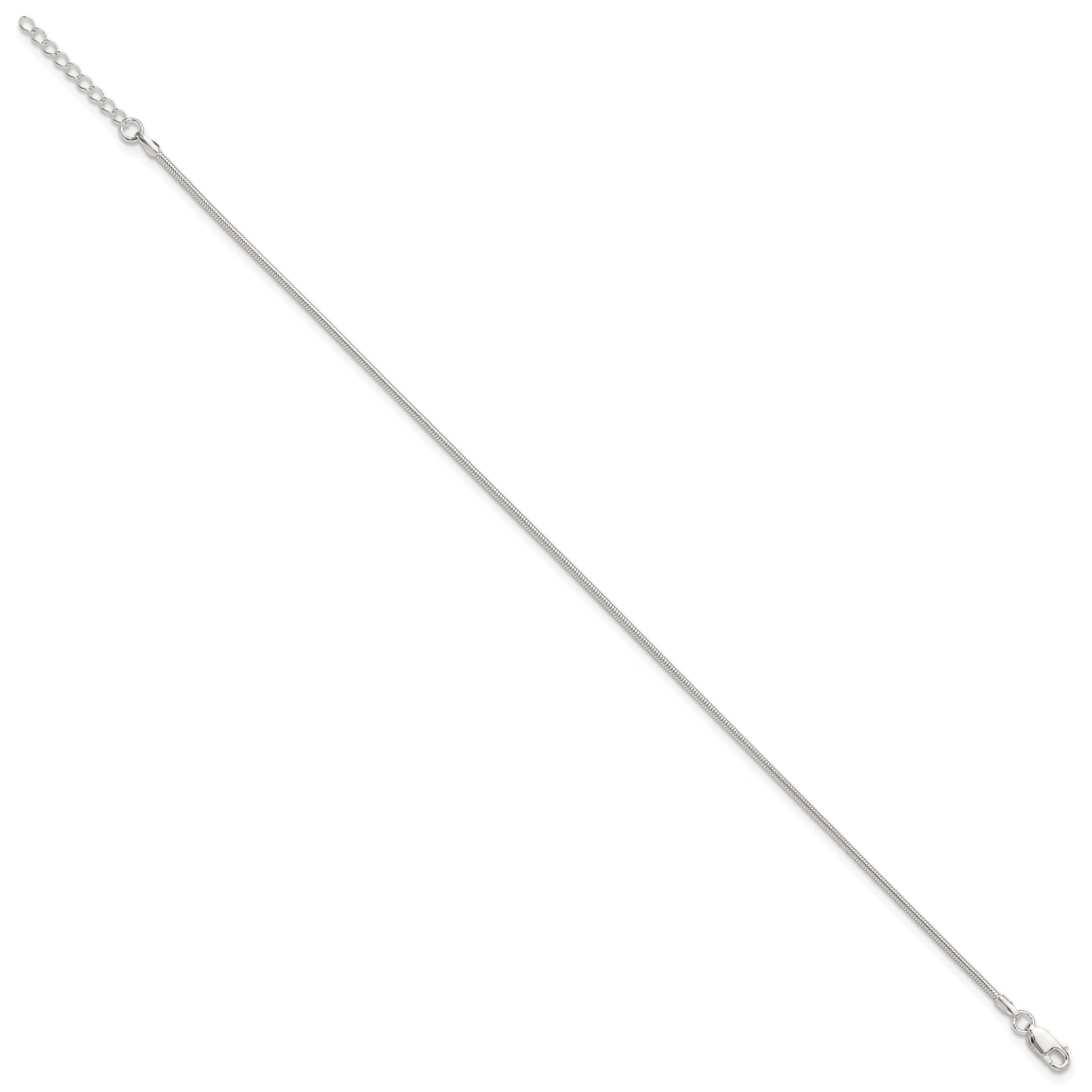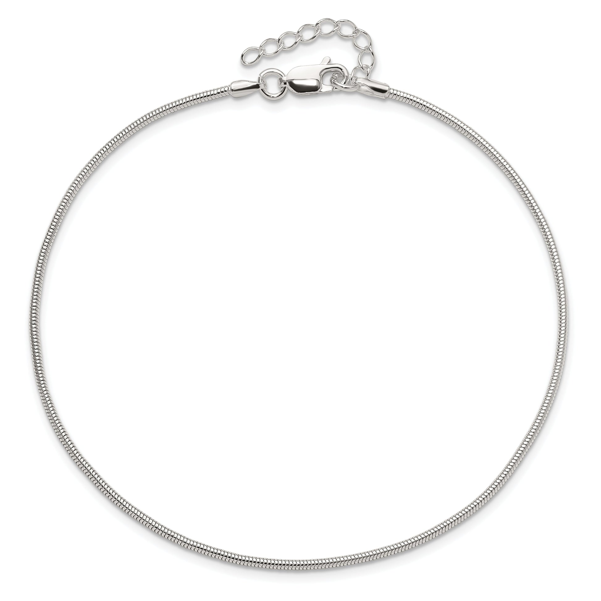 Introducing the 9 Inch Sterling Silver 1.5mm Round Snake Chain Anklet with a 1 Inch Extension, a must-have for those who love graceful yet sturdy jewelry. Crafted from pure 925 sterling silver, this anklet features a sleek snake chain with a polished finish. Its anti-tarnish coating keeps it shining bright. The lobster clasp ensures easy wear and secure fit. With an extender for customizable length, this anklet suits every ankle. Versatile and durable, the 9 Inch Sterling Silver Snake Chain Anklet elevates any outfit effortlessly. Add this chic accessory to your collection today, and shine on!
