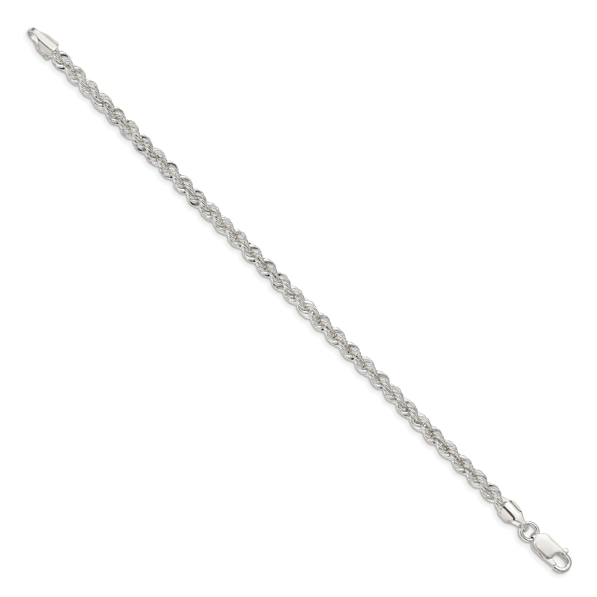 Introducing the 9 Inch Sterling Silver 4.3mm Solid Rope Chain, a must-have for those who cherish elegance. Crafted from 925 sterling silver, this chain boasts a polished finish that shines brilliantly. Its sturdy 4.3mm width and classic rope design ensure lasting beauty. With a length of 9 inches, this versatile piece can be worn as a bracelet or anklet. The lobster clasp adds security, while the anti-tarnish coating keeps it gleaming for years. Perfect for any occasion, the 9 Inch Sterling Silver 4.3mm Solid Rope Chain is an essential addition to your jewelry collection.
