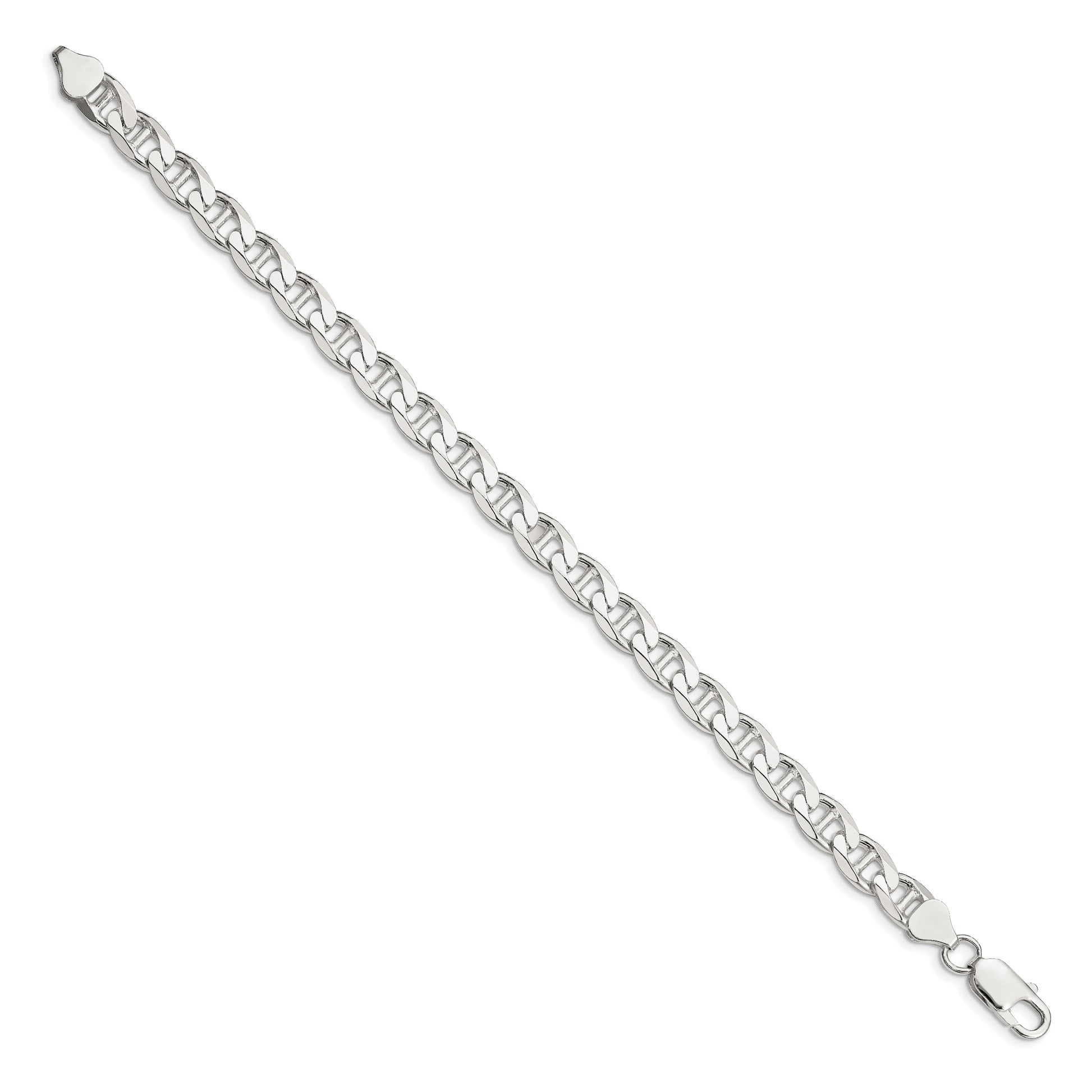 The 9-Inch Sterling Silver 7.4mm D/C Flat Anchor Curb Chain exudes timeless elegance with its polished finish and solid structure. Made from 925 sterling silver, this sleek men's bracelet promises lasting shine thanks to its anti-tarnish coating. The anchor-style links, measuring 7.4mm in width, offer bold appeal and a flat profile sits comfortably against your wrist. Precision casting ensures durability, while the sturdy lobster clasp guarantees secure wear. Perfect for any outfit, this bracelet's impeccable design showcases classic style and is sure to turn heads. Embrace the sterling silver 9-Inch D/C Flat Anchor Curb Chain and elevate your look.