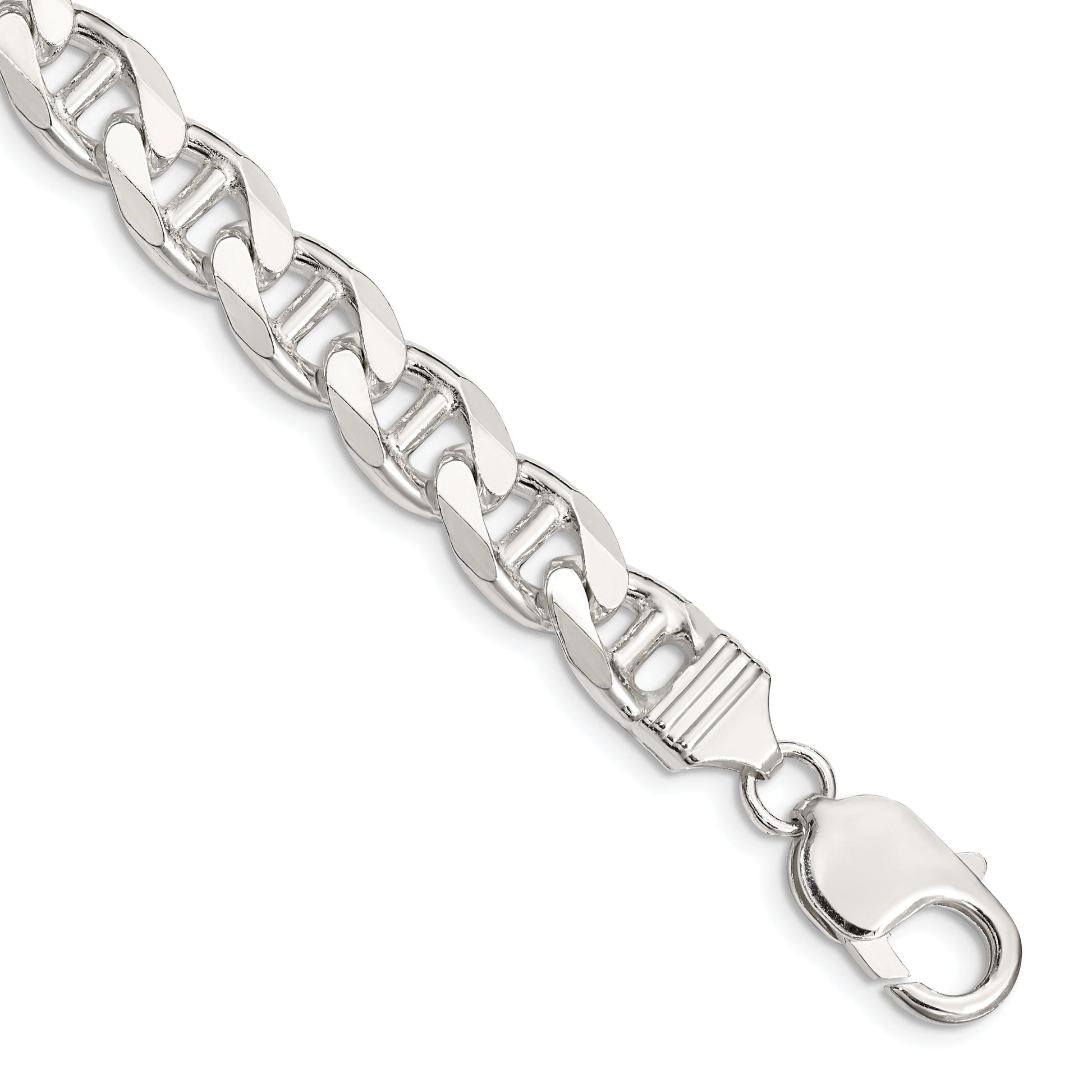 Meet your new favorite statement piece, the 9 Inch Sterling Silver 9mm D/C Flat Anchor Curb Chain Bracelet. Crafted from high-quality 925 sterling silver, this men's bracelet combines elegance and durability. Its polished finish and solid, anti-tarnish design make it a standout accessory for any occasion. The chain type, known as the anchor curb, has a flat profile with a thickness of 3.2mm and width of 9mm, creating a bold yet classic look. The lobster clasp ensures secure wear. Elevate your style with the timeless sophistication of this sterling silver bracelet.