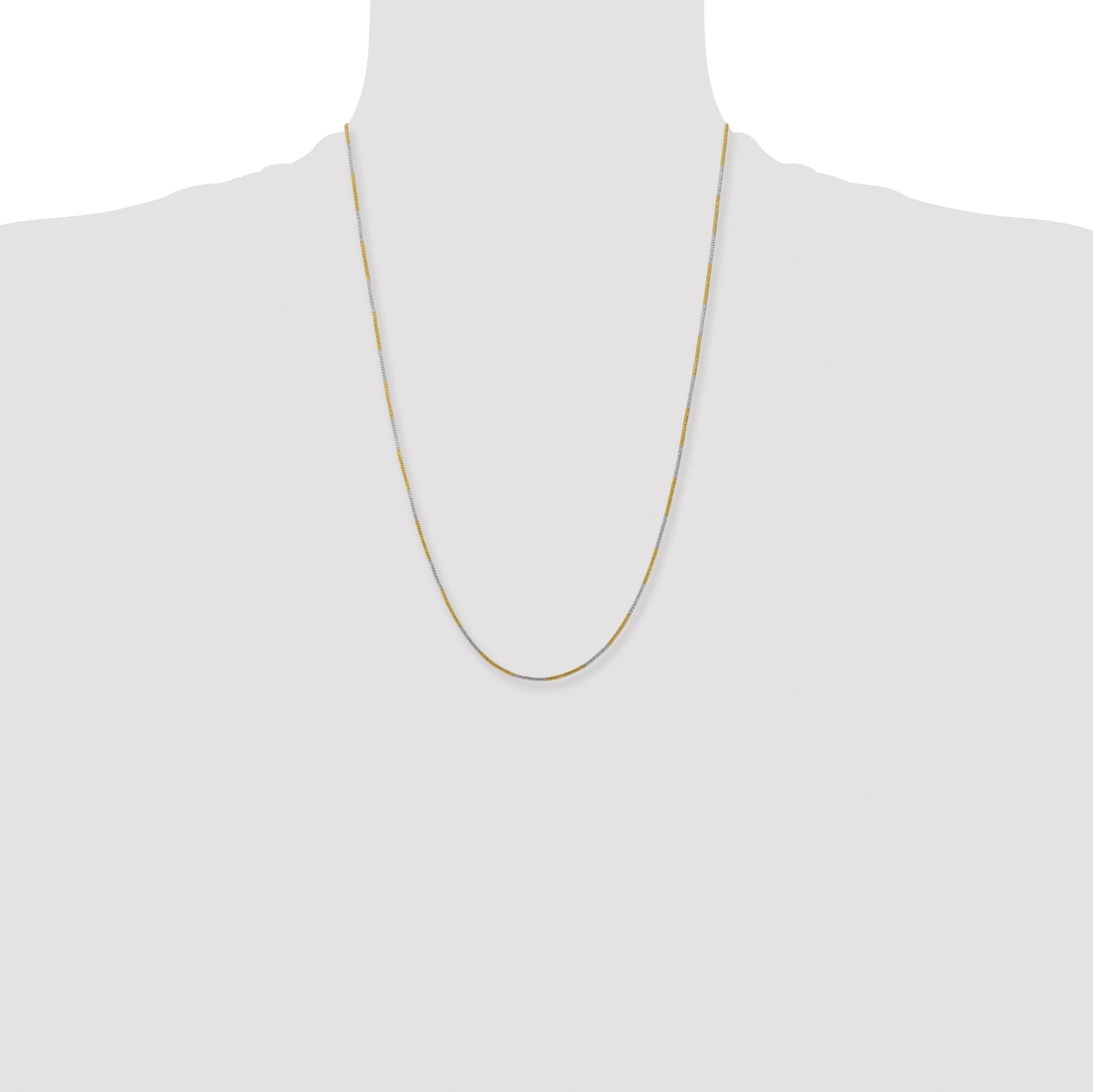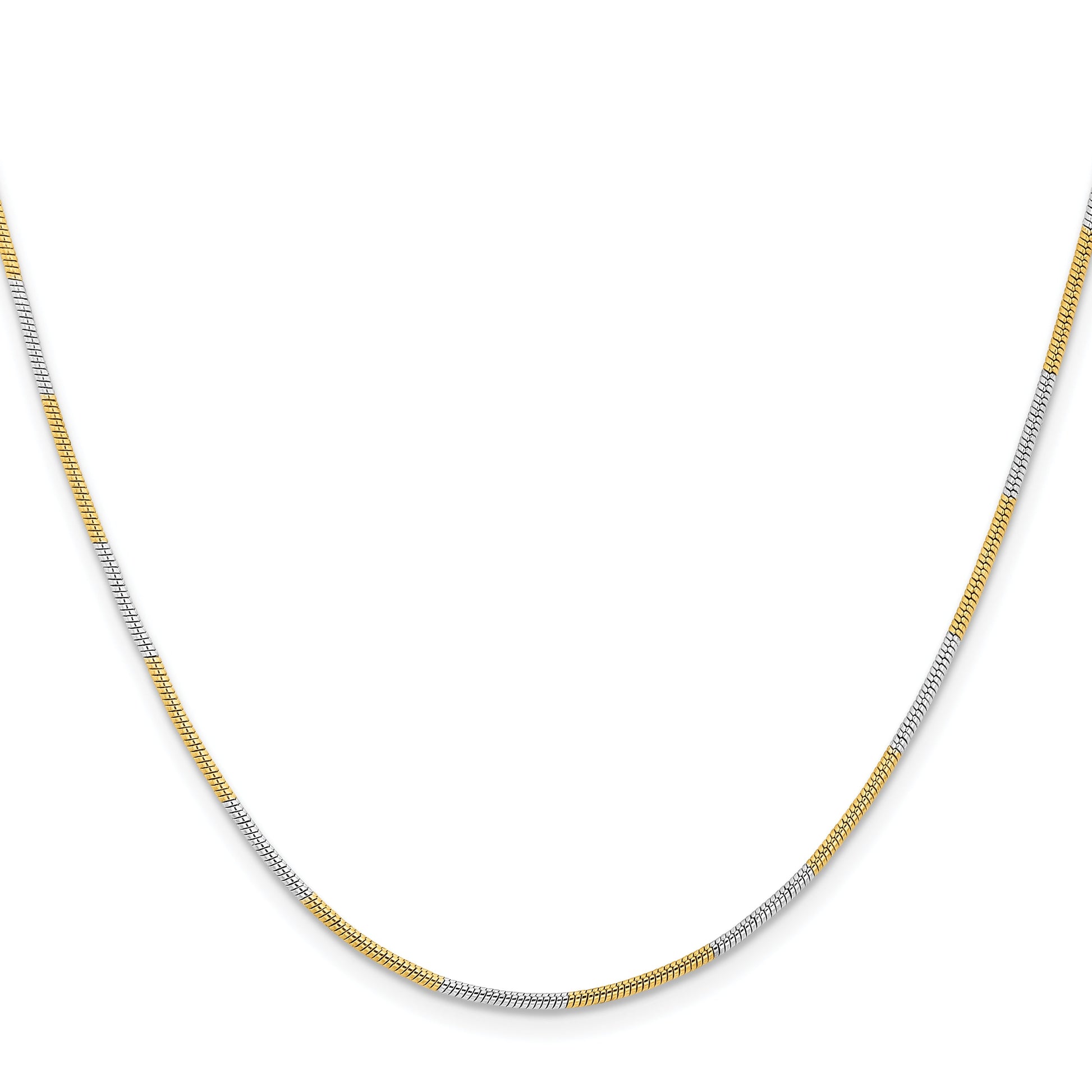 Meet the Brass/White Chisel Two-Tone Snake Chain, a sleek blend of style and durability. This striking 24-inch necklace features a robust snake chain design, crafted from polished brass and white tones, giving it a versatile appeal. The slim 1.00mm width offers elegance without compromising strength. Its solid construction ensures long-lasting wear, perfect for everyday style or special occasions. A secure spring ring clasp adds to its practicality, and it arrives ready to gift in a chic pouch. Elevate any ensemble with the timeless beauty of the Brass/White Chisel Two-Tone Snake Chain.