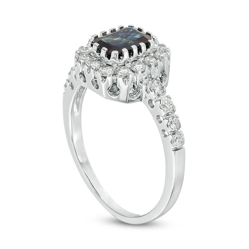 Cushion-Cut Blue Sapphire and 0.50 CT. T.W. Natural Diamond Frame Engagement Ring in Solid 14K White Gold