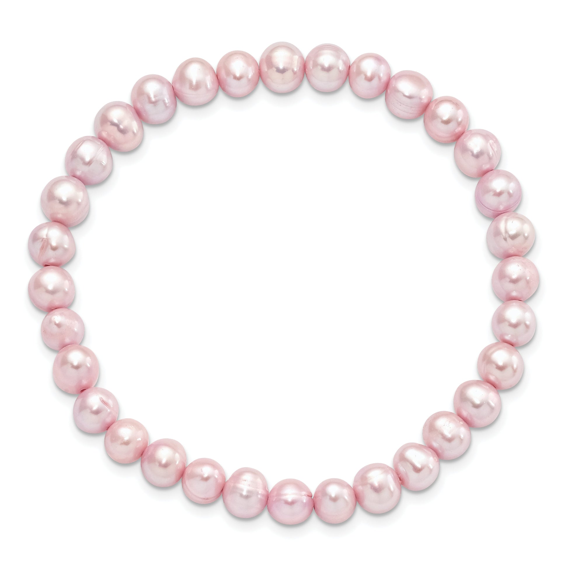 The Fashion 6-7mm Pink Semi-Round Freshwater Cultured Pearl Stretch Bracelet adds a touch of elegance to any look. Lovingly crafted by hand, this piece flaunts 32 charming pink pearls, each semi-round and artisanally dyed to enhance their natural beauty. The pearls range from 6 to 7 mm, offering a delightful variety. This 7-inch bracelet fits comfortably thanks to its stretch design, making it easy to slip on without any fuss. The Fashion 6-7mm Pink Semi-Round Freshwater Cultured Pearl Stretch Bracelet is a timeless accessory that will elevate and complete your style.