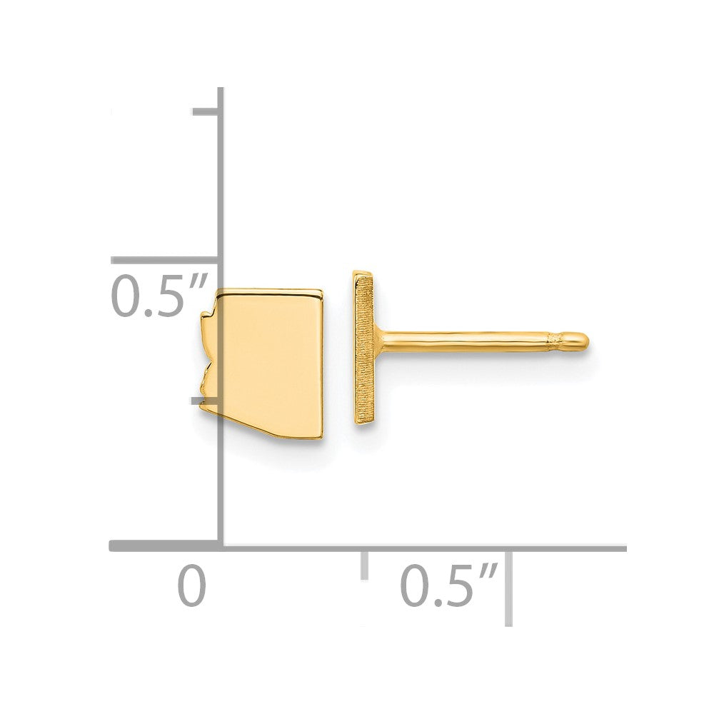Celebrate the beauty of Arizona with the Gold Plated Arizona State Earrings. Crafted from 925 sterling silver and finished with a bright gold tone, these earrings are both stylish and durable. They measure 6.65 mm in length and 5.56 mm wide, making them a perfect small pop of gold for any outfit. Their button design with a post and push-back closure offers a secure fit. Ideal for women who want a simple yet meaningful piece, the Gold Plated Arizona State Earrings are a true showstopper, blending city pride with everyday style.