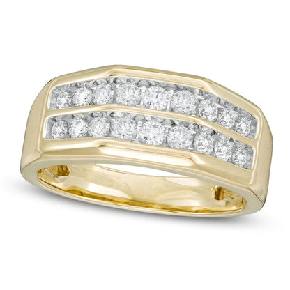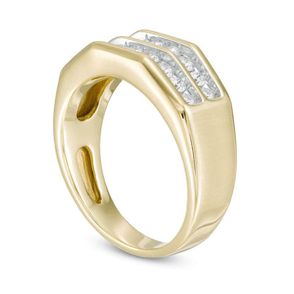 Men's 0.75 CT. T.W. Natural Diamond Double Row Wedding Band in Solid 10K Yellow Gold