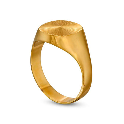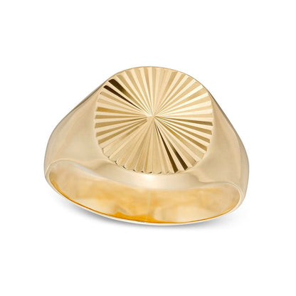 Natural Diamond-Cut Sunburst Signet Ring in Solid 10K Yellow Gold