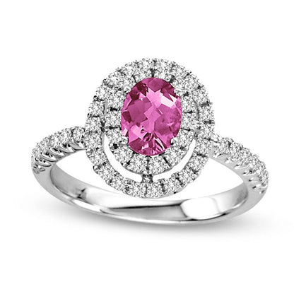 Oval Pink Sapphire and 0.50 CT. T.W. Natural Diamond Double Frame Ring in Solid 14K White Gold