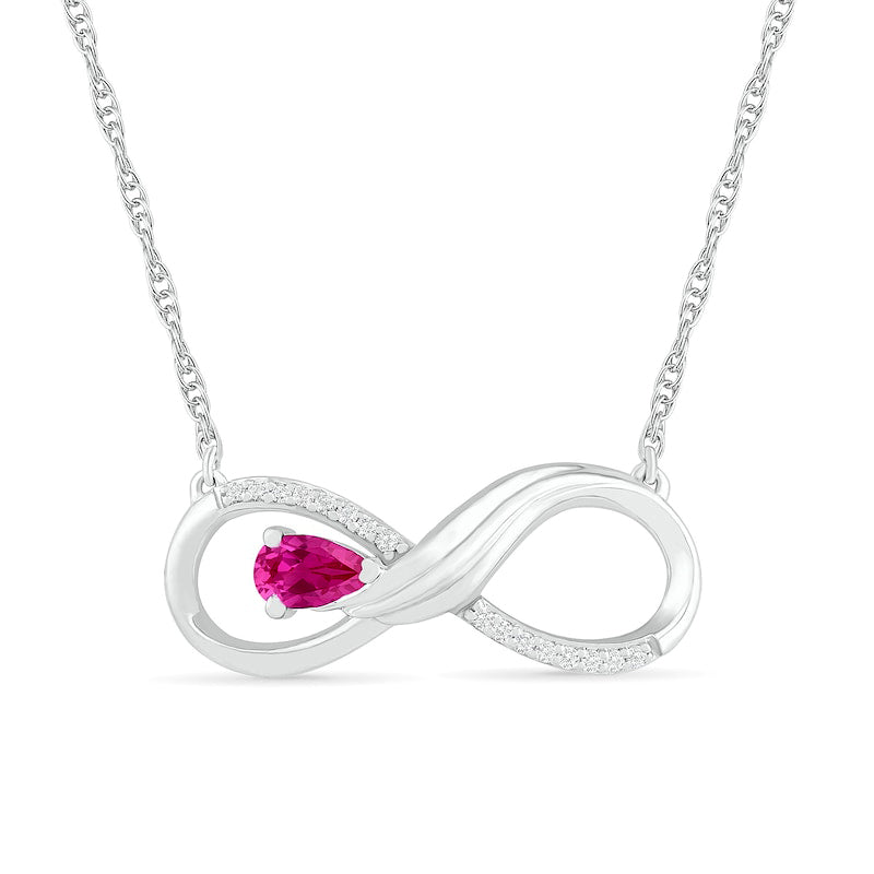 Pear-Shaped Lab-Created Pink Sapphire and 0.05 CT. T.W. Diamond Winged Infinity Necklace in Sterling Silver