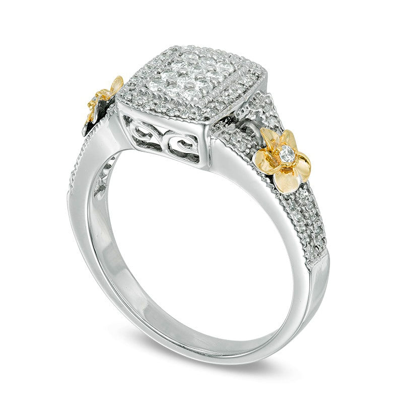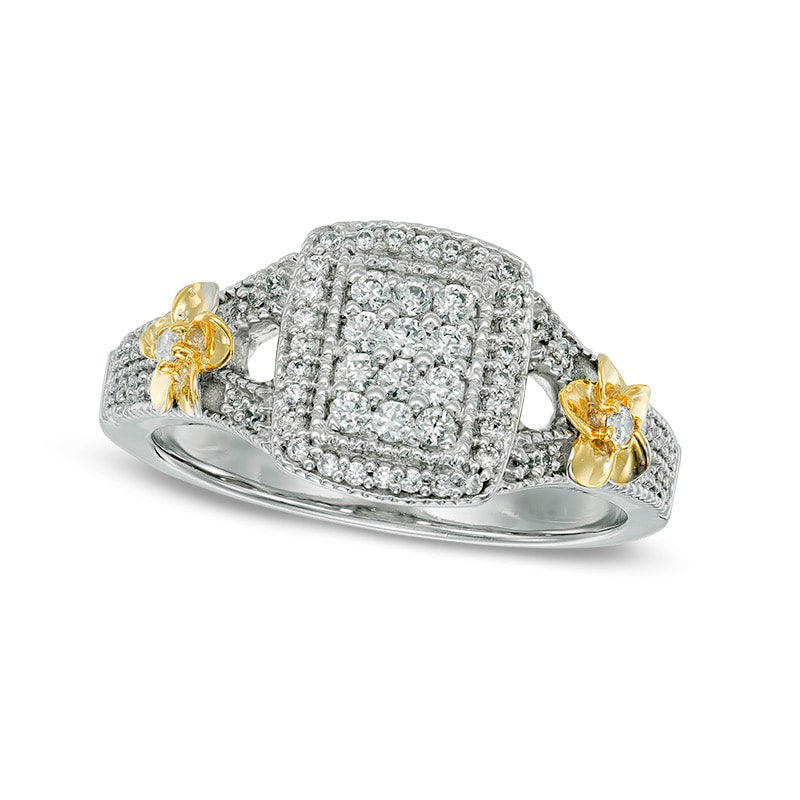 Previously Owned - 0.33 CT. T.W. Rectangular Composite Natural Diamond Frame Double Flower Ring in Solid 10K Two-Tone Gold