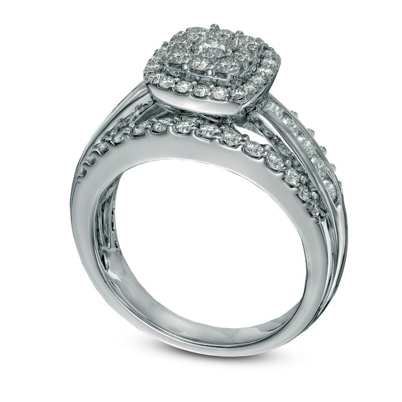 Previously Owned - 1.25 CT. T.W. Natural Diamond Cluster Frame Engagement Ring in Solid 14K White Gold