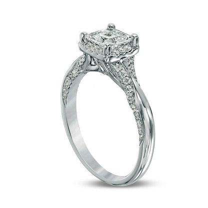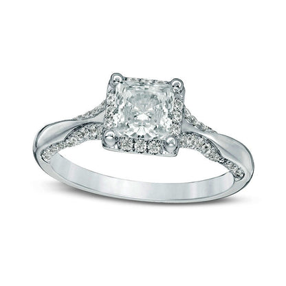 Previously Owned - 1.25 CT. T.W. Princess-Cut Natural Diamond Frame Engagement Ring in Solid 14K White Gold