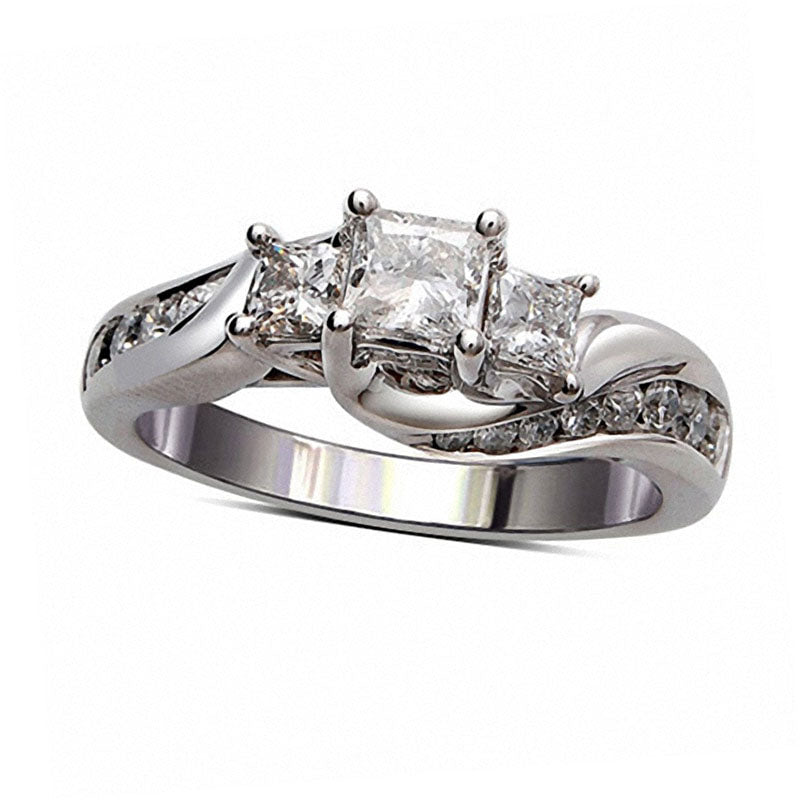 Previously Owned - 1.0 CT. T.W. Princess-Cut Natural Diamond Three Stone Swirl Ring in Solid 14K White Gold