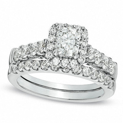 Previously Owned - 2.0 CT. T.W. Radiant-Cut Natural Diamond Framed Bridal Engagement Ring Set in Solid 14K White Gold