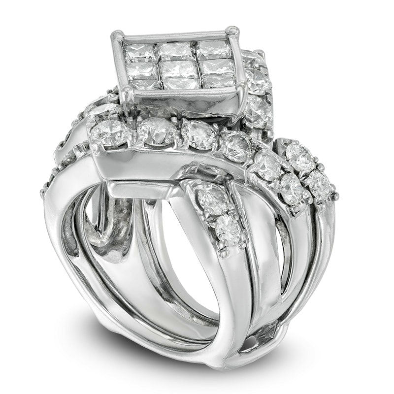 Previously Owned - 5 CT. T.W. Princess-Cut Composite Natural Diamond Square Frame Crossover Bridal Engagement Ring Set in Solid 14K White Gold