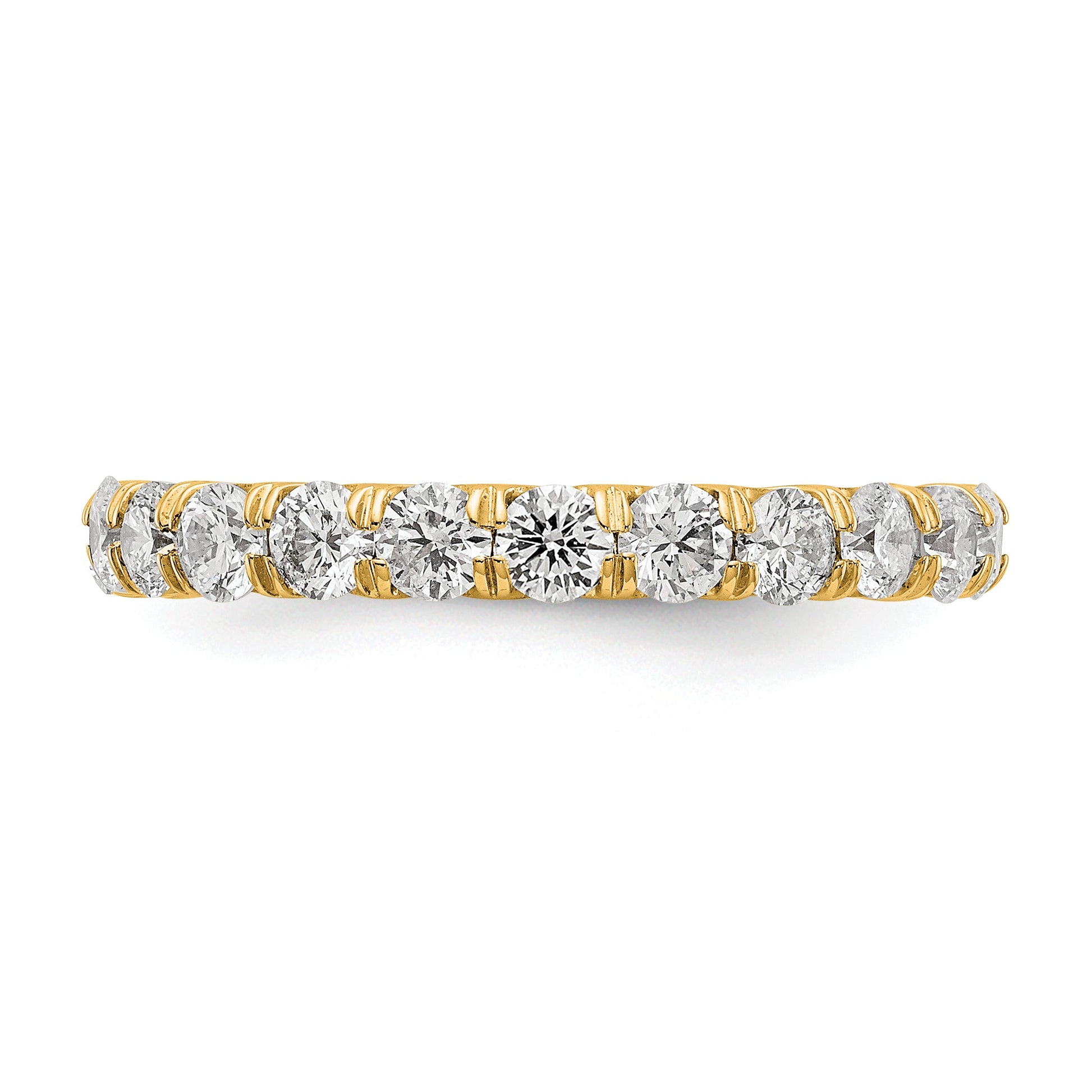 This ring features 19 round-cut CZ stones, totaling 0.093 ct, set in a polished, solid gold band. It's a complete ring, with all stones included, and not sizeable. The faceted stones are synthetic and have a grade of G-I. The stone color is white, and the stone clarity is I1 (AA). This ring is a true statement of style and elegance.