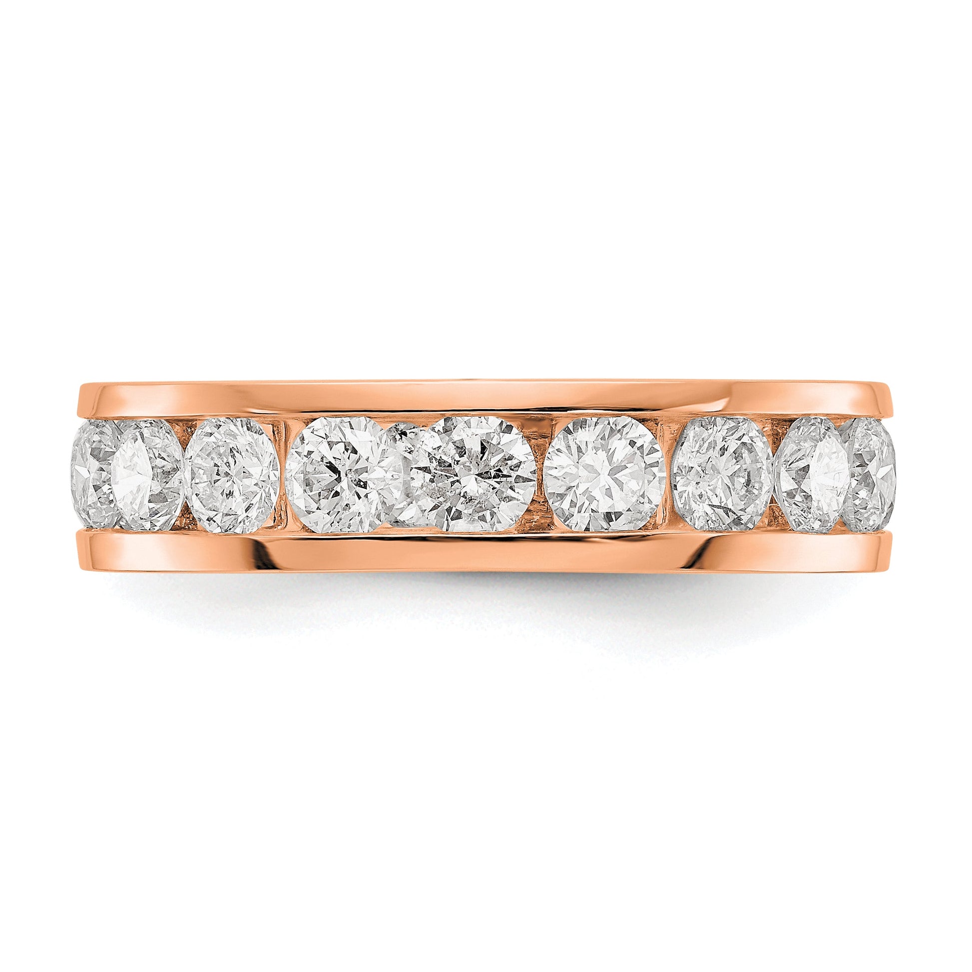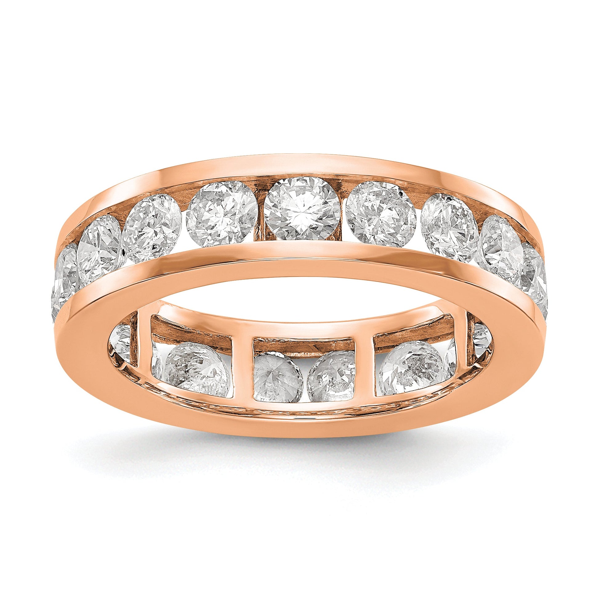 Introducing our Solid Real 14k Rose Gold Eternity Wedding Band Ring. This ring is made of high-quality materials and is available in 14k white, yellow or rose gold. It is stamped with 14k for authenticity and exceptional quality. The ring features beautiful cubic zirconia that is hand-set and polished by our experienced jewelers. You can also upgrade to natural diamonds if you prefer. Our ring makes the perfect gift for any occasion, and comes with a 30 day money-back guarantee and complimentary gift box. It's the perfect ring for daily wear or to give as a promise ring. The ring is not sizeable and features 21 round stones in a channel setting.