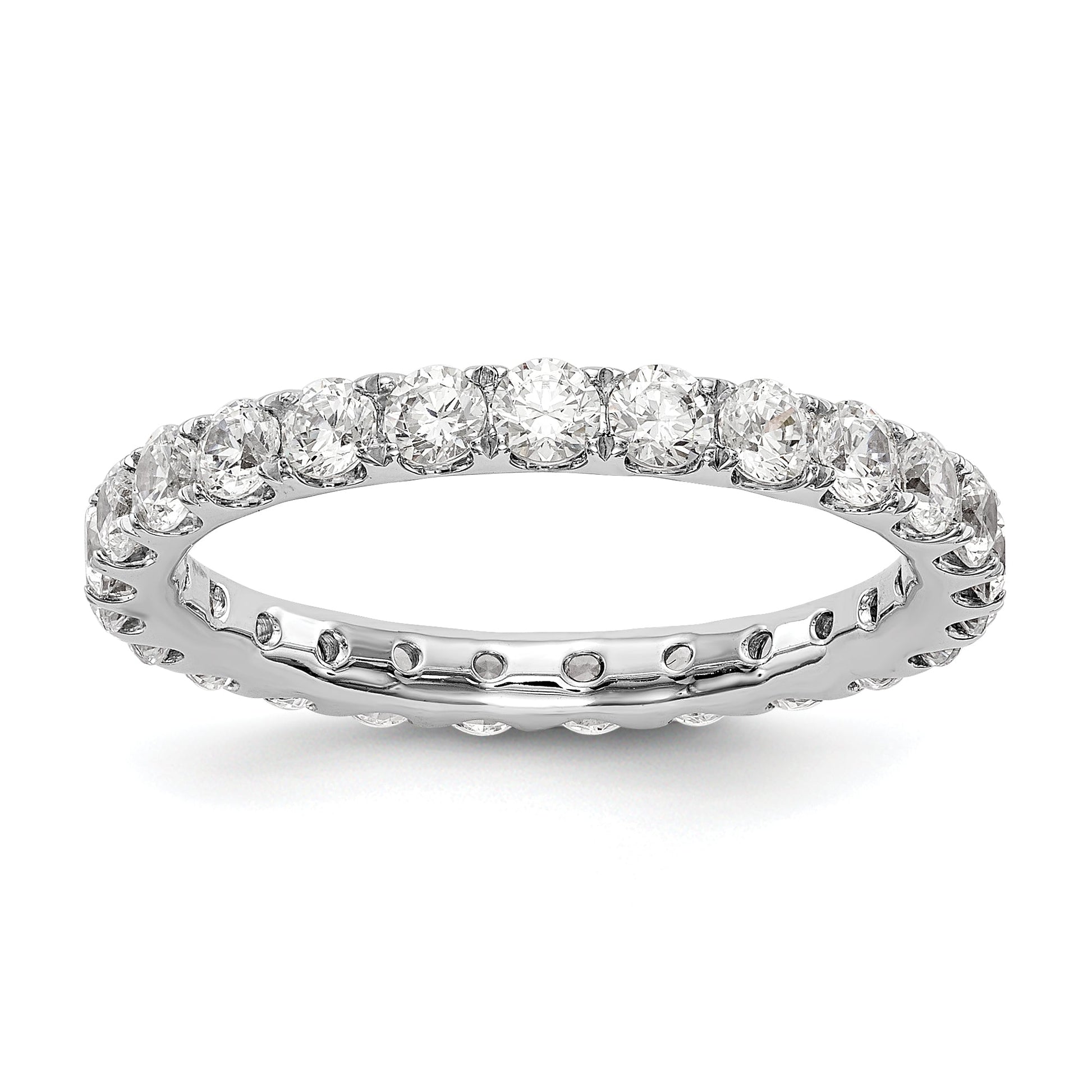 This stunning eternity wedding band ring is crafted from solid real 14k white gold and features 22 hand-set AAA quality cubic zirconia stones. The U shared prong setting showcases the brilliant sparkle of the stones and the polished gold adds luxury and elegance to any outfit. This ring can be customized in your choice of solid 14k yellow or rose gold at no additional cost. Goldia rings are stamped with 14K for authenticity and exceptional quality. Gold won't oxidize or discolor, so you can wear this ring every day, everywhere without worry. For those looking to upgrade, we offer to mount natural diamonds too. This genuine 14K gold ring makes the perfect gift for any special occasion like birthdays, anniversaries, graduations, weddings, engagements, bridal parties, Mother's Day, Valentine's Day, Christmas, or just to say I love you. It is an affordable alternative to natural earth-mined diamonds and doubles well as a vacation-safe ring, an everyday ring, and/or a promise ring. Accompanied with a 30 day, hassle-free, money-back guarantee, this beautiful ring comes with a complimentary gift box. If for any reason you're not satisfied with your purchase, please contact us directly. As a USA based company, we pride ourselves on superior customer service.