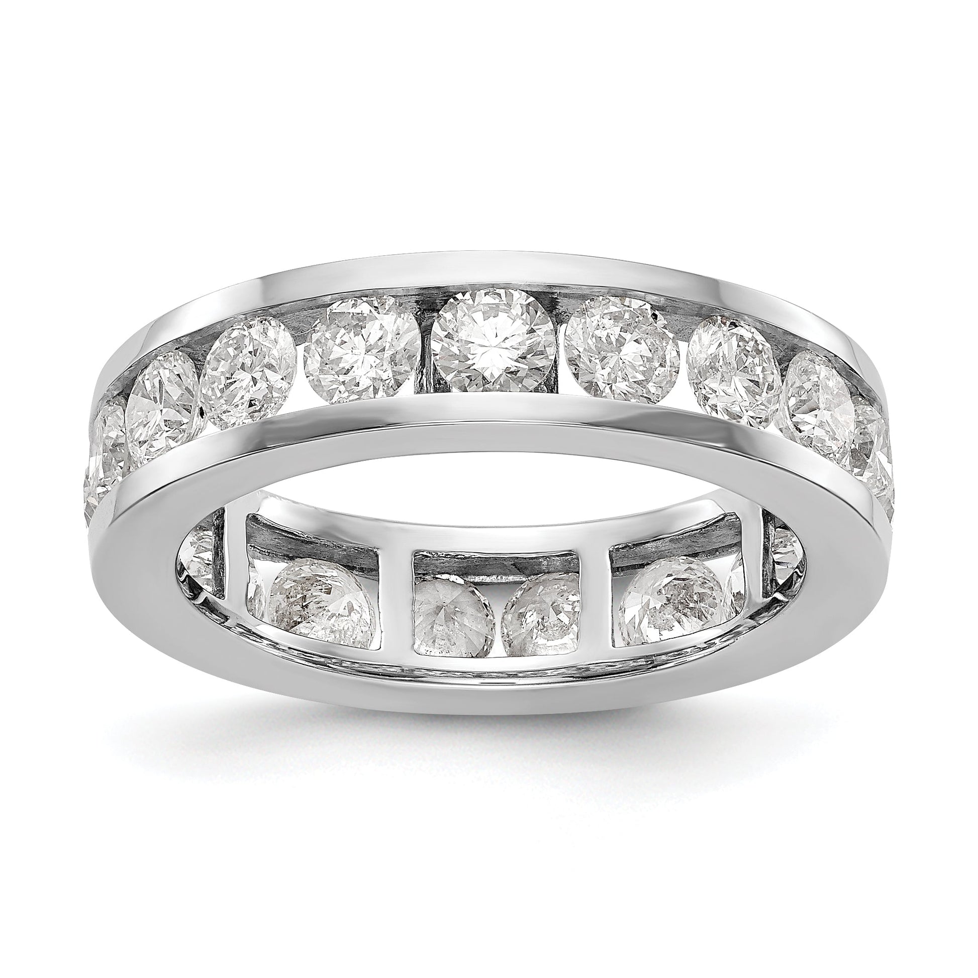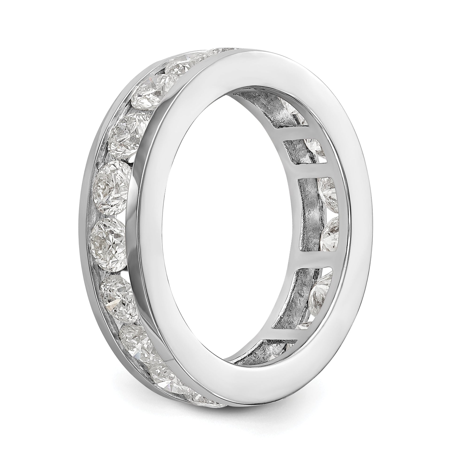 This ring is complete with all stones included, and it is not sizeable. Its primary finish is polished and it is plated with rhodium. The ring features 17 round-shaped stones with a size of 3.6 mm each, and a total weight of 0.1765 ct. This eternity wedding band ring is the ideal ring for anyone who wants to make a statement without breaking the bank. Order yours today!
