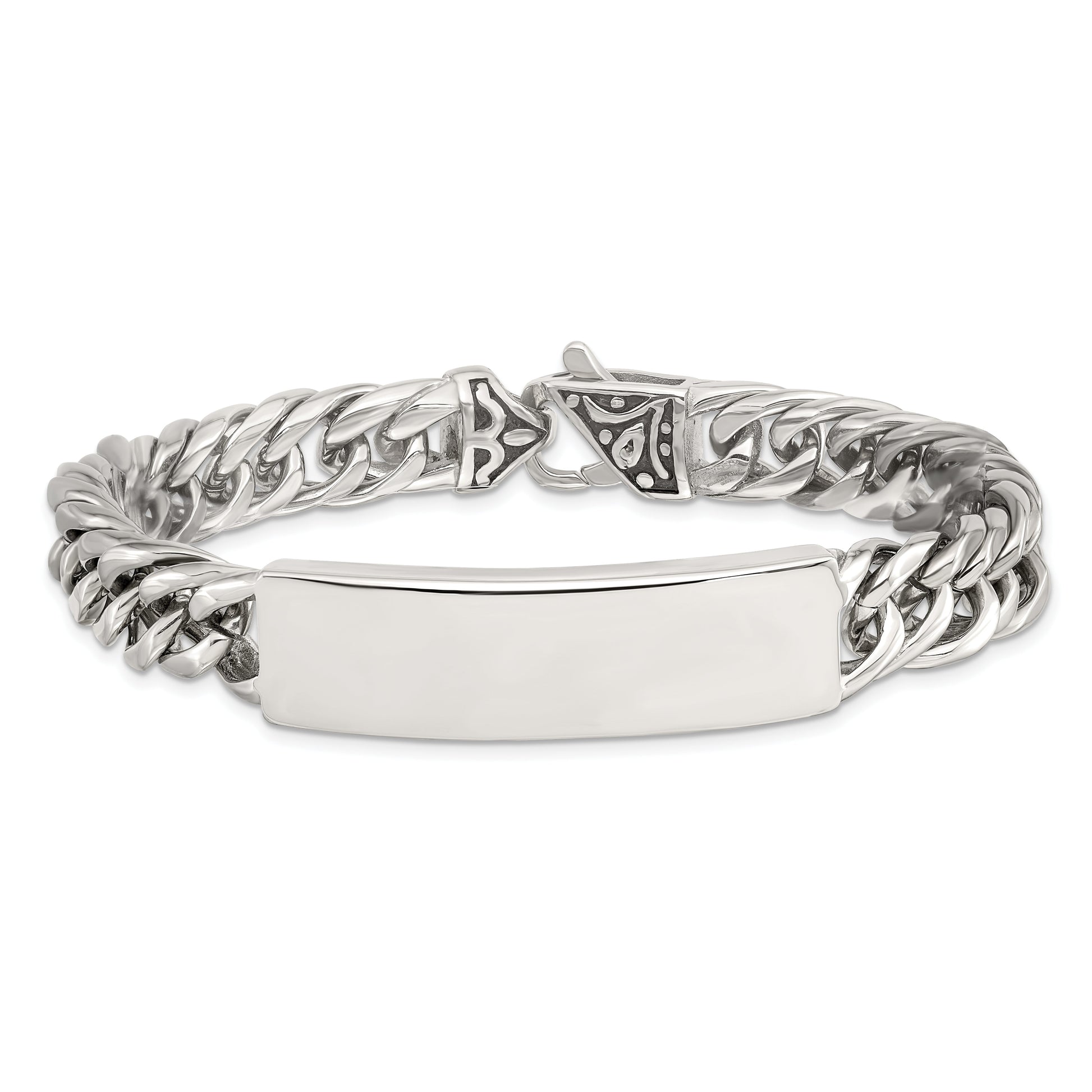 The Stainless Steel Chisel Antiqued and Polished Curb Chain 8.5 Inch ID Bracelet is perfect for the modern man seeking style. Crafted from durable stainless steel, this bracelet offers a blend of polished and antique finishes, resulting in a striking look. The curb chain is 8.5 inches long, with a width of 10mm, allowing for a comfortable fit. It features a robust lobster clasp and can be engraved on the front, making it a thoughtful gift choice. This bracelet is neatly packaged in a gift box. The Stainless Steel Chisel Antiqued and Polished Curb Chain 8.5 Inch ID Bracelet blends finesse with a personal touch for any occasion.