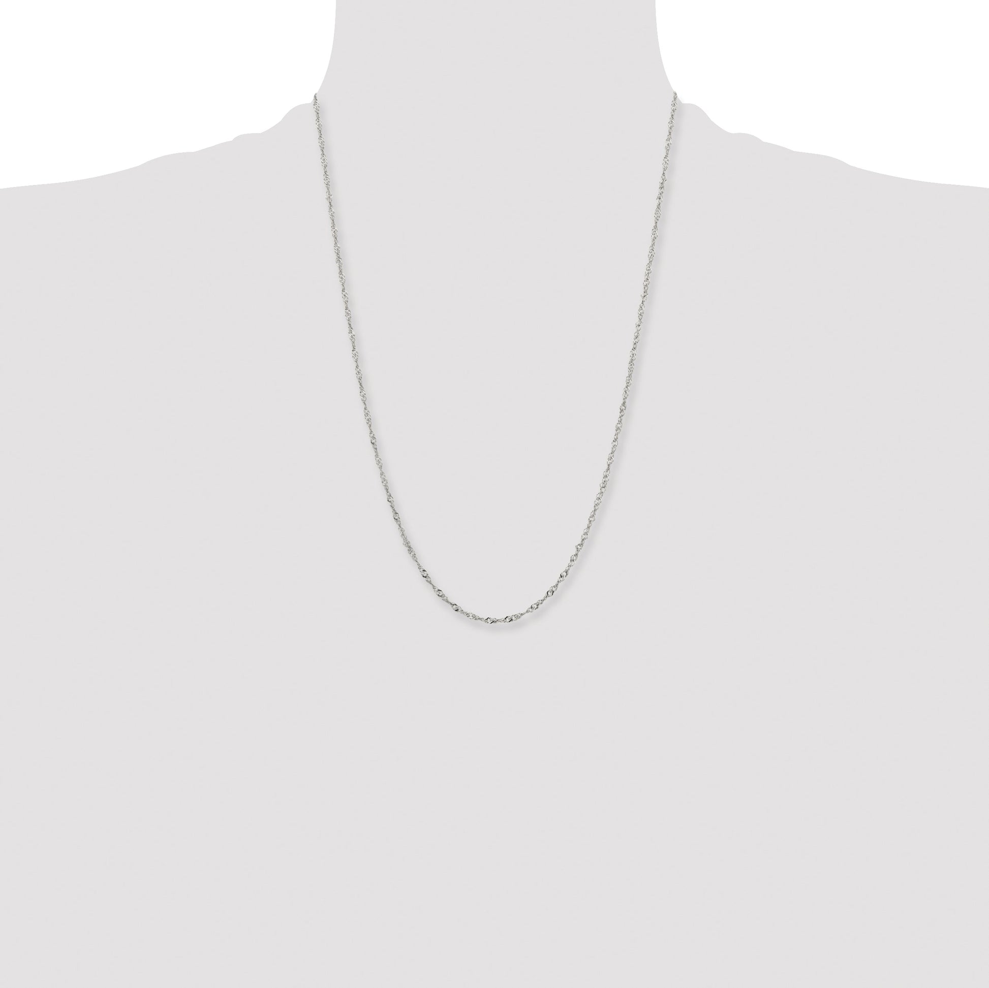 Introducing the Stainless Steel Chisel Polished 2.5mm 24 Inch Singapore Chain, a sleek piece for any jewelry lover. This stainless steel chain flaunts a polished finish, giving it a radiant shine. It's 24 inches long and features a 2.5mm width, perfect for those who appreciate subtle elegance. This Singapore chain, with its distinctive twisted design, sits beautifully on the neckline. The strong lobster clasp secures it in place. With its classy stainless steel in a timeless white hue, it suits both men and women. Delivered in a chic gift pouch, this Singapore chain makes an ideal gift.
