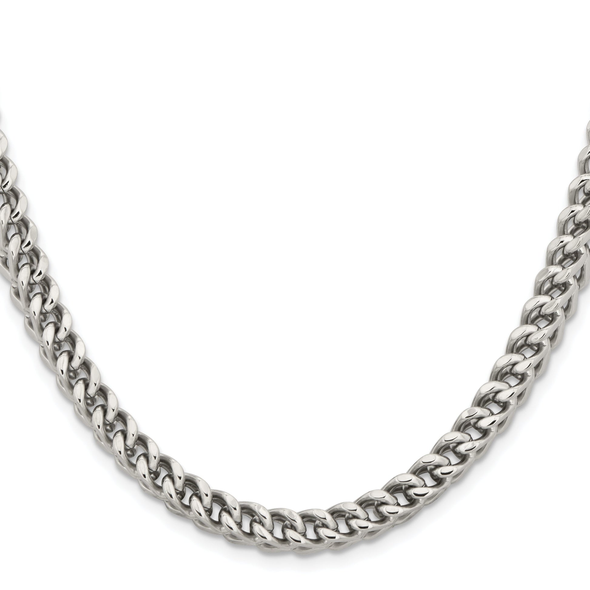 The Stainless Steel Chisel Polished 6.75mm 22 Inch Franco Chain is a standout addition to any jewelry collection. Crafted from durable stainless steel, this chain features a polished finish that exudes sophistication. Measuring 22 inches in length, it drapes perfectly for a modern look. The 6.75mm width offers a sturdy touch to your style, making it an ideal choice for men who appreciate fine craftsmanship. Its Franco design ensures a timeless appeal, fastened securely with a lobster clasp. Each chain comes in a stylish gift pouch, perfect for gifting. Enhance your look with this exquisite Stainless Steel Chisel Polished Franco Chain.