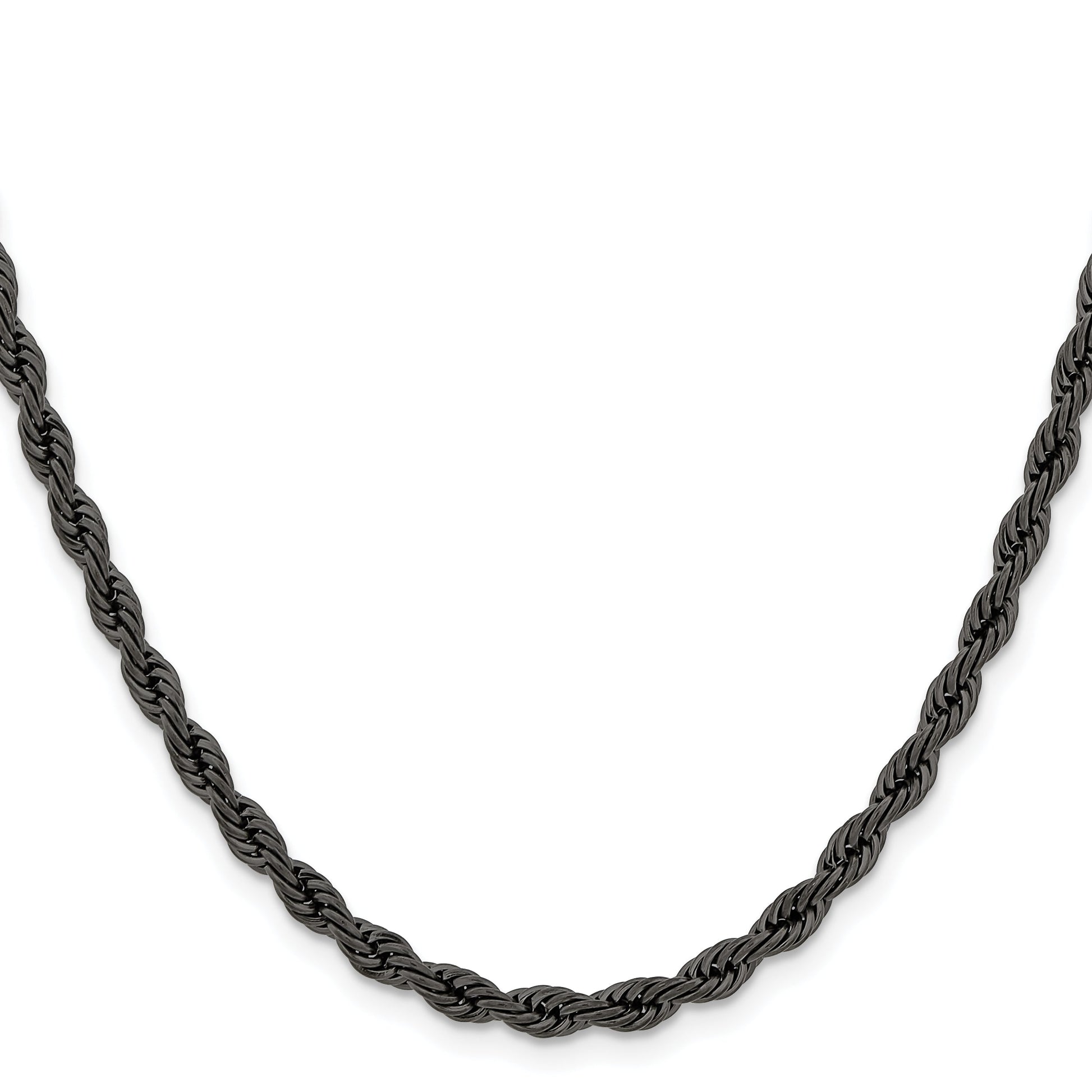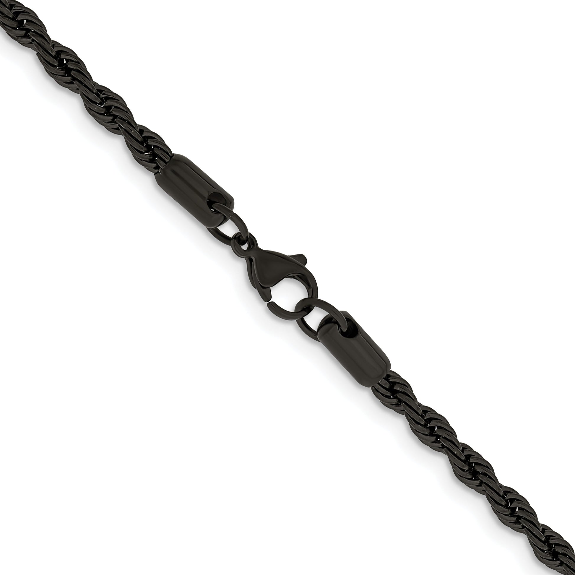 The Stainless Steel Chisel Polished Black IP-Plated 4mm 20 Inch Rope Chain is a real beauty. This necklace is crafted from durable stainless steel and flaunts a glossy finish. The chain spans 20 inches, suitable for both men and women. Its rope design adds an edgy twist and measures 4 mm in width. This jewelry piece comes with a robust lobster clasp, ensuring it stays secure. Packaged with care in a stylish gift pouch, the Stainless Steel Chisel Polished Black IP-Plated 4mm 20 Inch Rope Chain makes a thoughtful gift or a solid choice for your own collection.