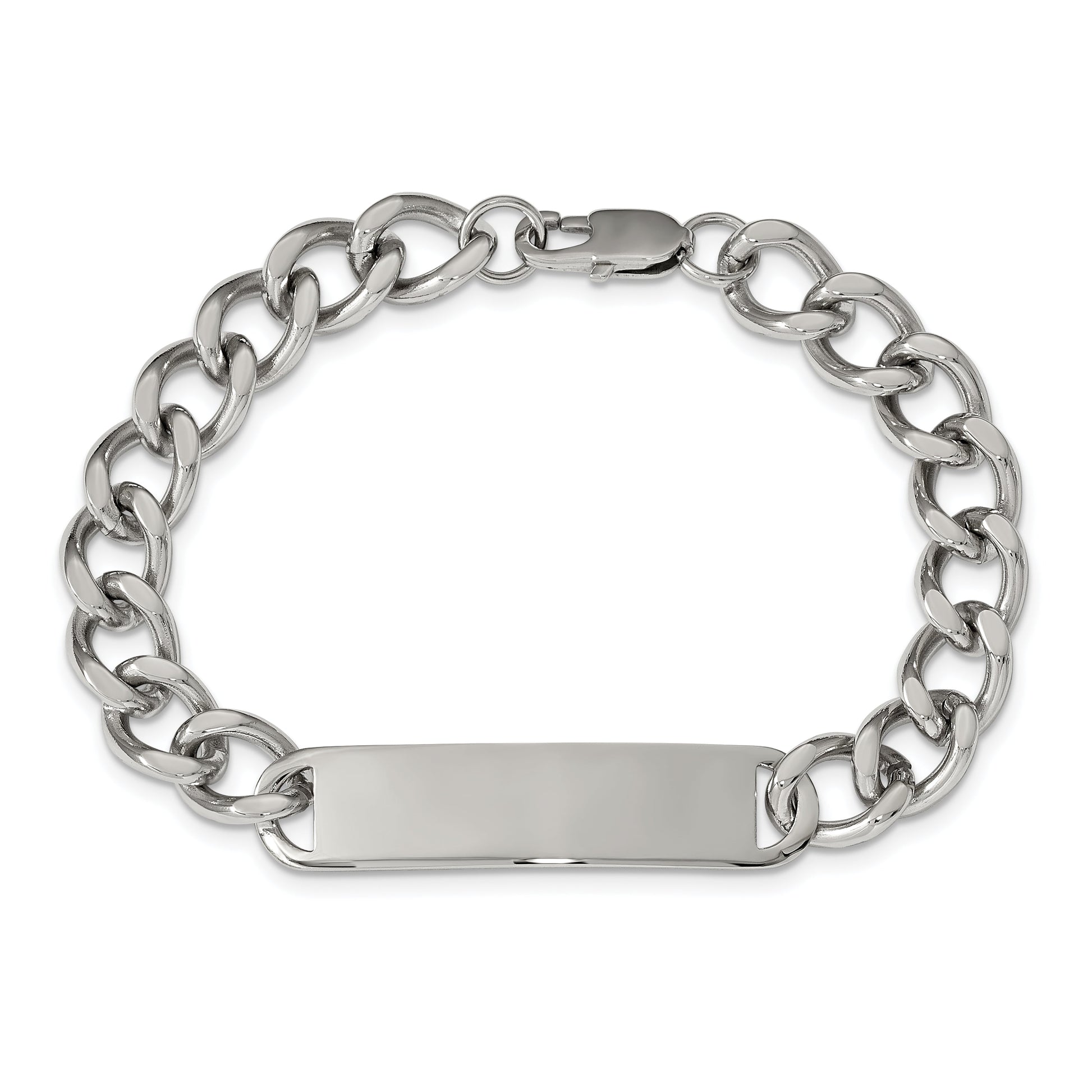 The Stainless Steel Chisel Polished Curb Chain 8.5-Inch ID Bracelet is a blend of rugged charm and sleek style. Crafted from polished stainless steel, this bracelet offers a glossy finish that catches the light. Measuring 8.5 inches in length with a bold 10 mm width, it's the perfect accessory for any wrist. The curb chain design is both classic and masculine. A secure lobster clasp ensures it stays put, while the engravable plate adds a personal touch. Packaged in a gift box, the Stainless Steel Chisel Polished Curb Chain Bracelet makes a standout gift for any modern man.