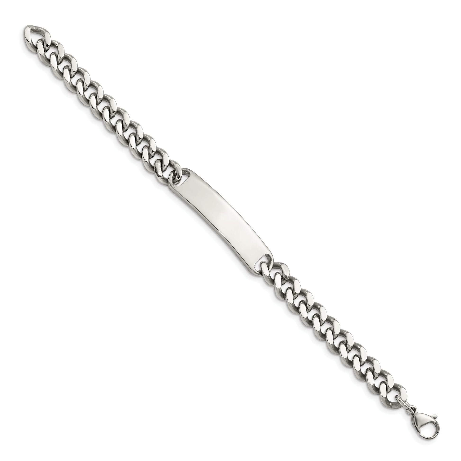 The Stainless Steel Chisel Polished Curb Chain 8.5 Inch ID Bracelet is a stunning piece of jewelry that makes a lasting impression. Made from durable stainless steel, this bracelet measures 8.5 inches long and 9 mm wide, displaying a polished finish that shines. The classic curb chain design and lobster clasp give it a strong yet sleek appeal, fitting for any occasion. You can even personalize it to add a unique touch. To top it off, the bracelet comes gift-boxed, making it an ideal gift for loved ones. Indulge yourself or surprise someone special with the Stainless Steel Chisel Polished Curb Chain 8.5 Inch ID Bracelet.