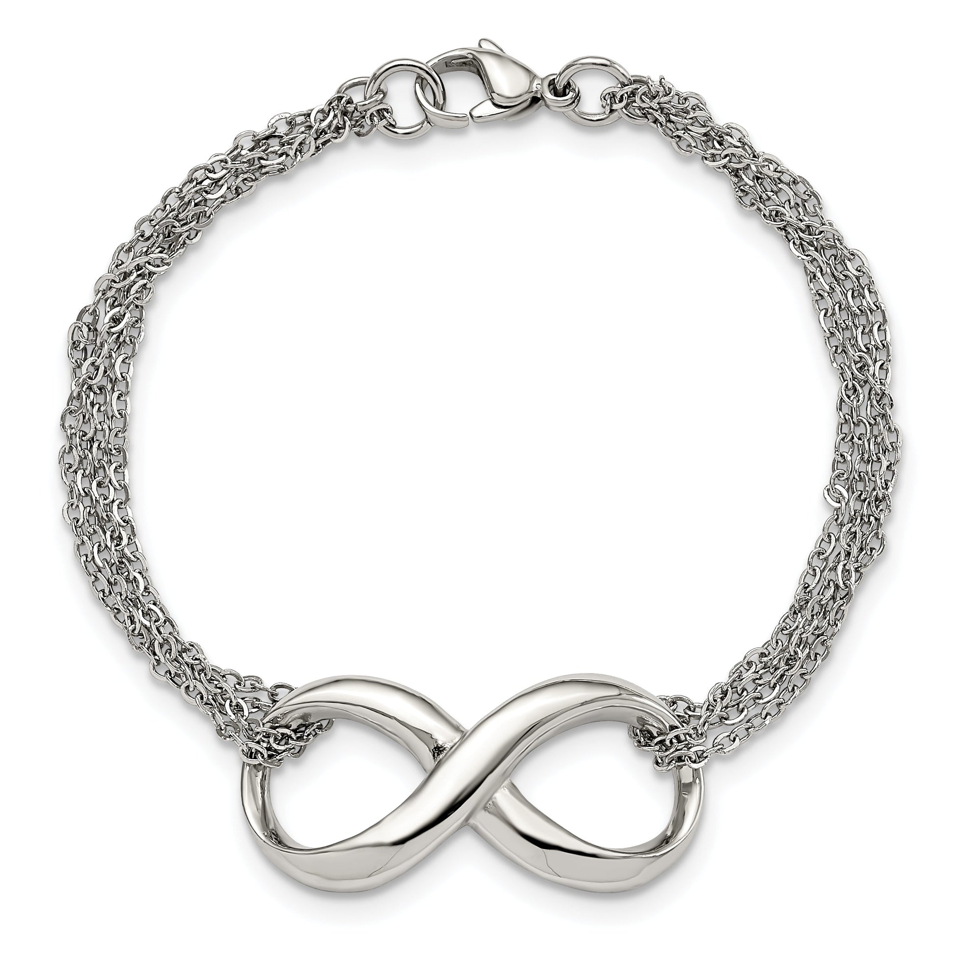 The Stainless Steel Chisel Polished Infinity Symbol 7.5 Inch Multi-Strand Bracelet offers timeless charm and style. This elegant bracelet showcases a polished finish, highlighting its sleek stainless steel construction. It measures 7.5 inches in length and features a durable cable chain with an eye-catching infinity symbol that adds a touch of sophistication. The multi-strand design elevates its appeal, making it a standout accessory for any occasion. The secure lobster clasp ensures a perfect fit, while it comes beautifully gift-boxed, making it an ideal gift for loved ones. Elevate your jewelry collection with this stunning Infinity Symbol 7.5 Inch Multi-Strand Bracelet.