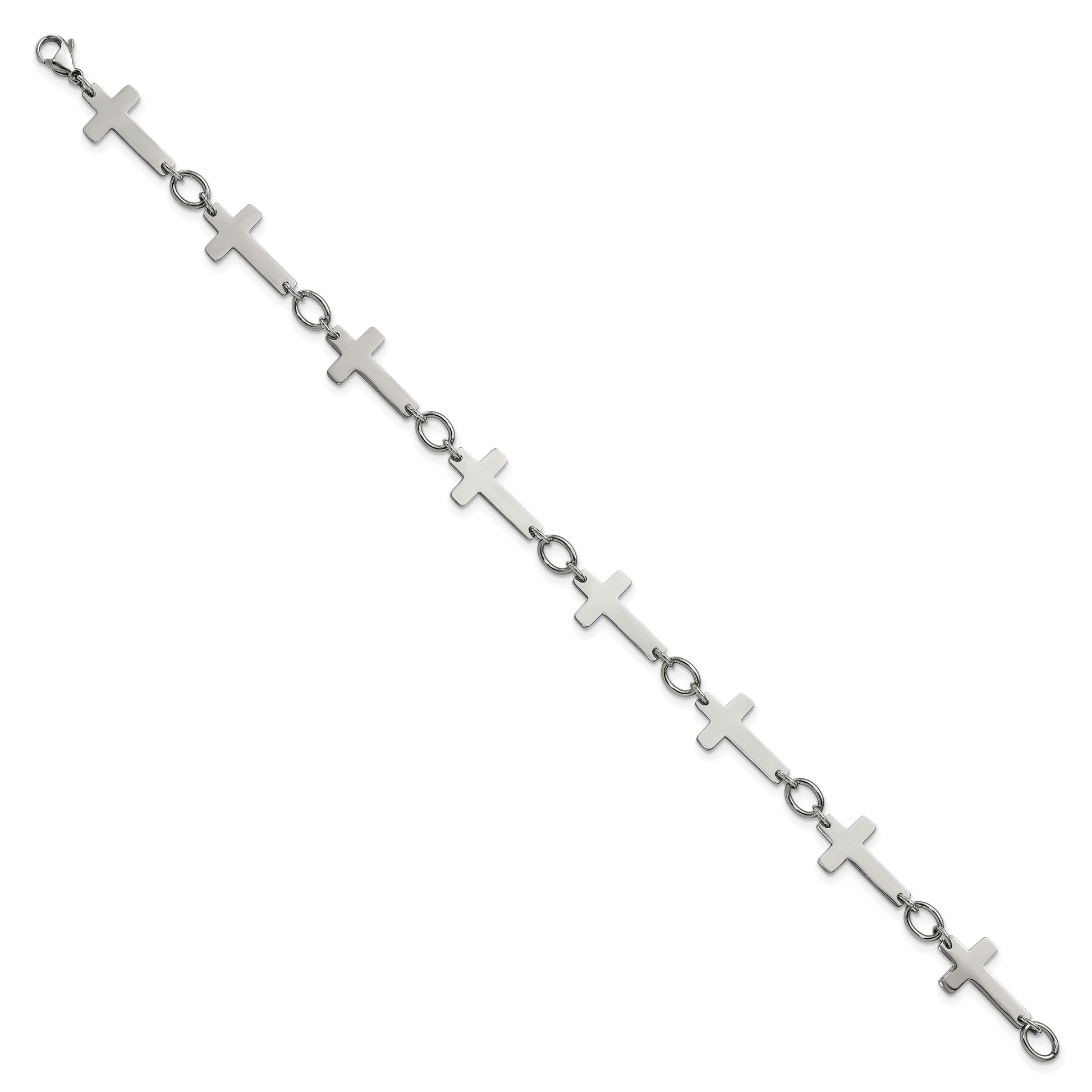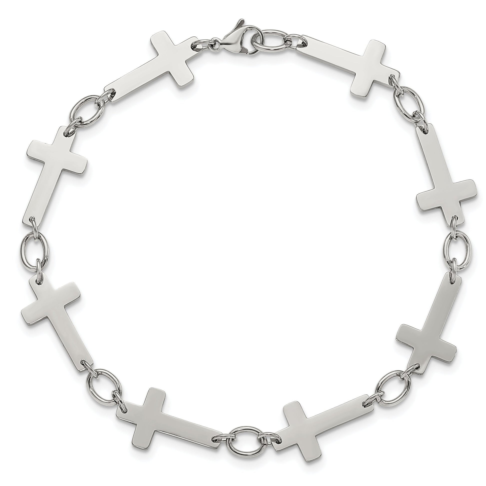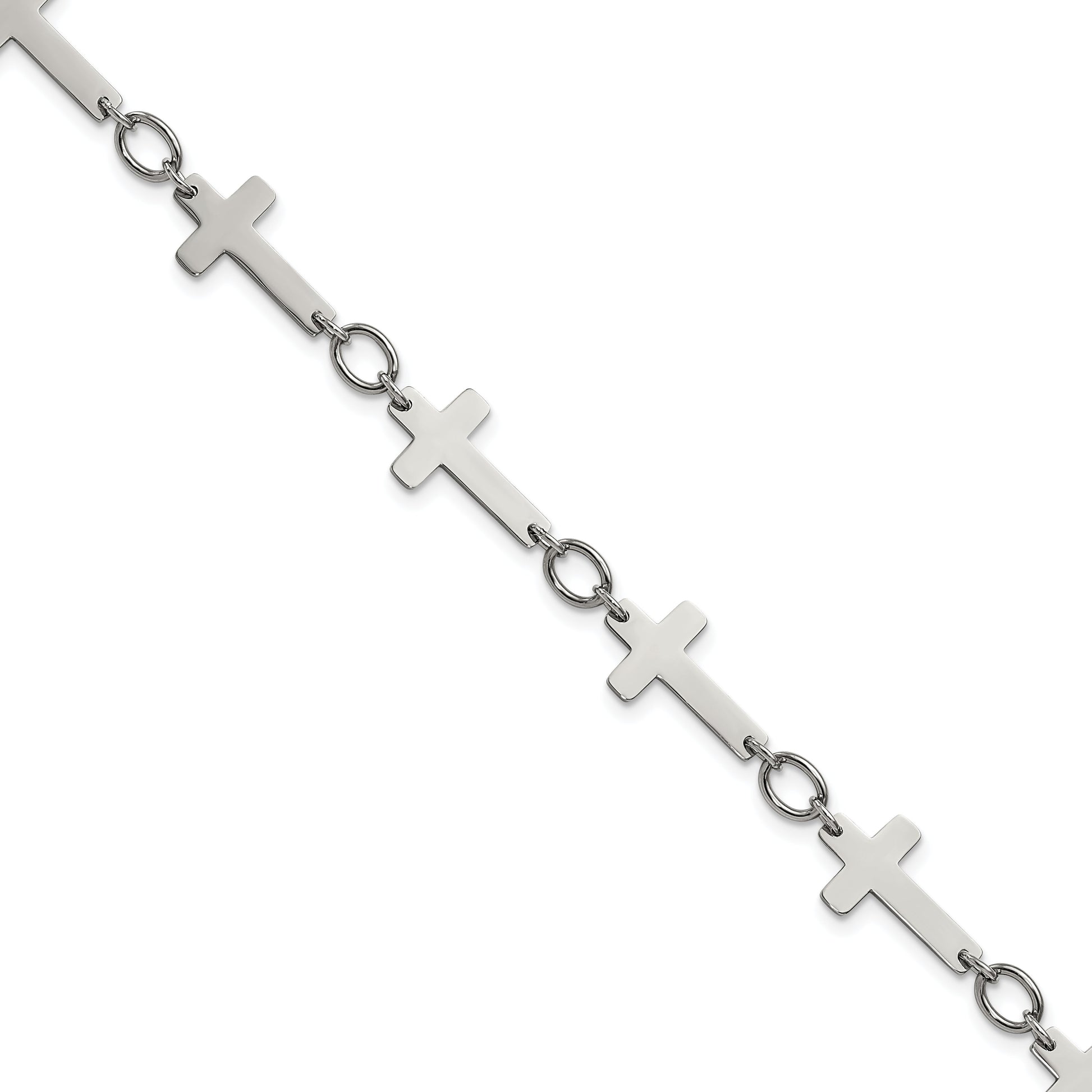 Introducing the dazzling Stainless Steel Chisel Polished Sideways Cross Link 10 Inch Anklet, a must-have addition to your jewelry collection. This exquisite piece features a polished finish that offers a sleek, modern look. Crafted from durable stainless steel, it is built to last while maintaining its shine. The anklet measures 10 inches in chain length and 5 mm in width, ensuring a comfortable and stylish fit. The fancy lobster clasp provides a secure hold. Perfect for any occasion, this anklet comes packaged in a gift pouch. Elevate your style with the Stainless Steel Chisel Polished Sideways Cross Link 10 Inch Anklet.
