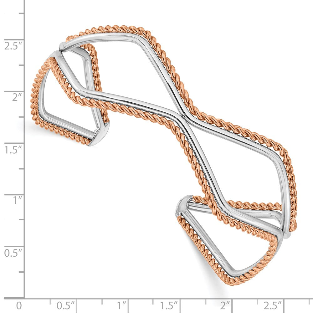 Stainless Steel Polished And Textured Rose Ip-Plated Cuff Bangle