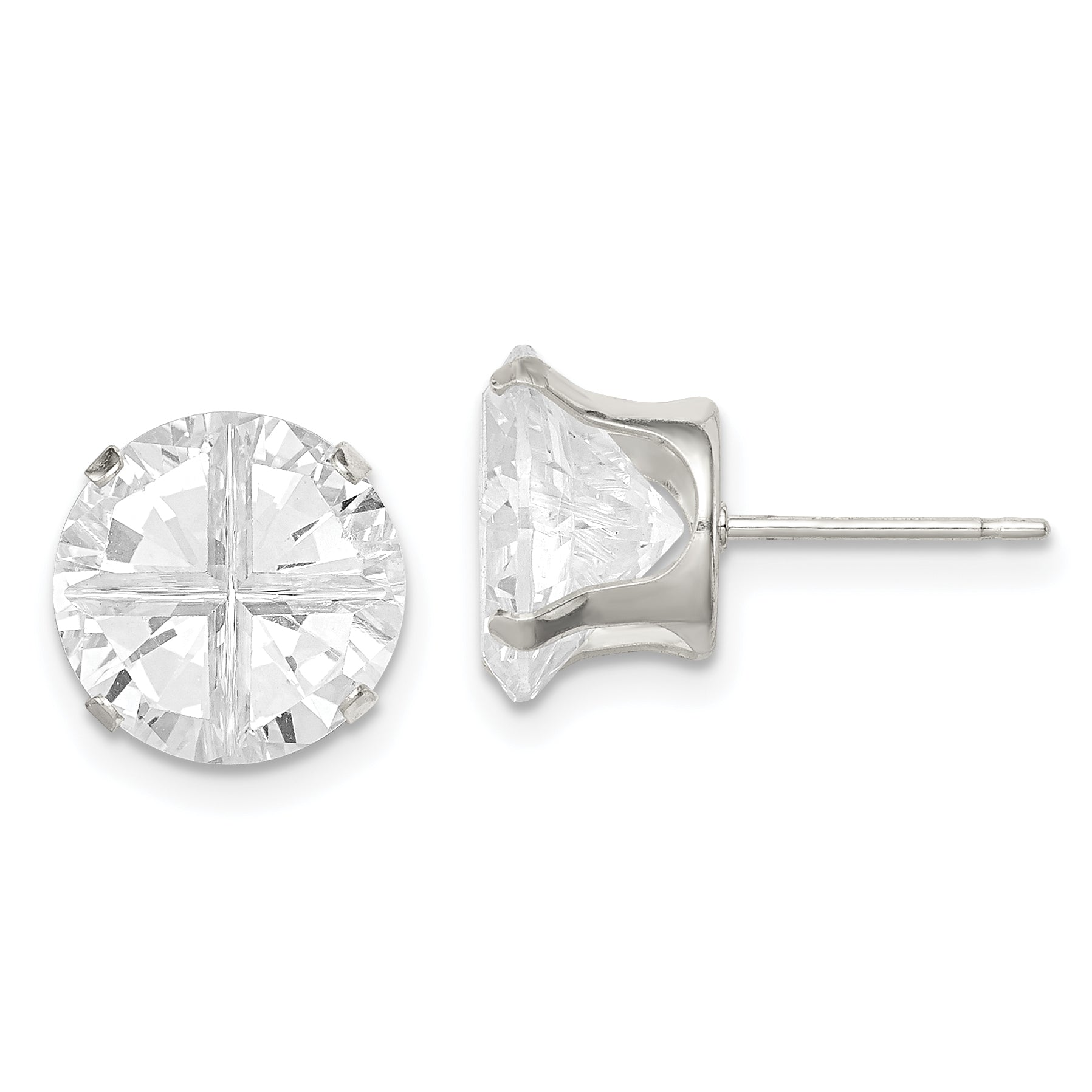 The Sterling Silver 10mm Round Snap Set Cross-Cut CZ Stud Earrings offer a timeless elegance for any occasion. Crafted from 925 sterling silver and polished to perfection, these earrings sparkle with clear, synthetic cubic zirconia stones at the center. Each stone measures a stunning 10mm, held securely in a snap-in mounting, creating a simple yet sophisticated look. Designed for a comfortable fit, the friction post and push-back closure ensure they stay in place. Perfect for any woman looking to add a touch of class to her jewelry collection, the Sterling Silver 10mm Round Snap Set Cross-Cut CZ Stud Earrings are the ideal choice.