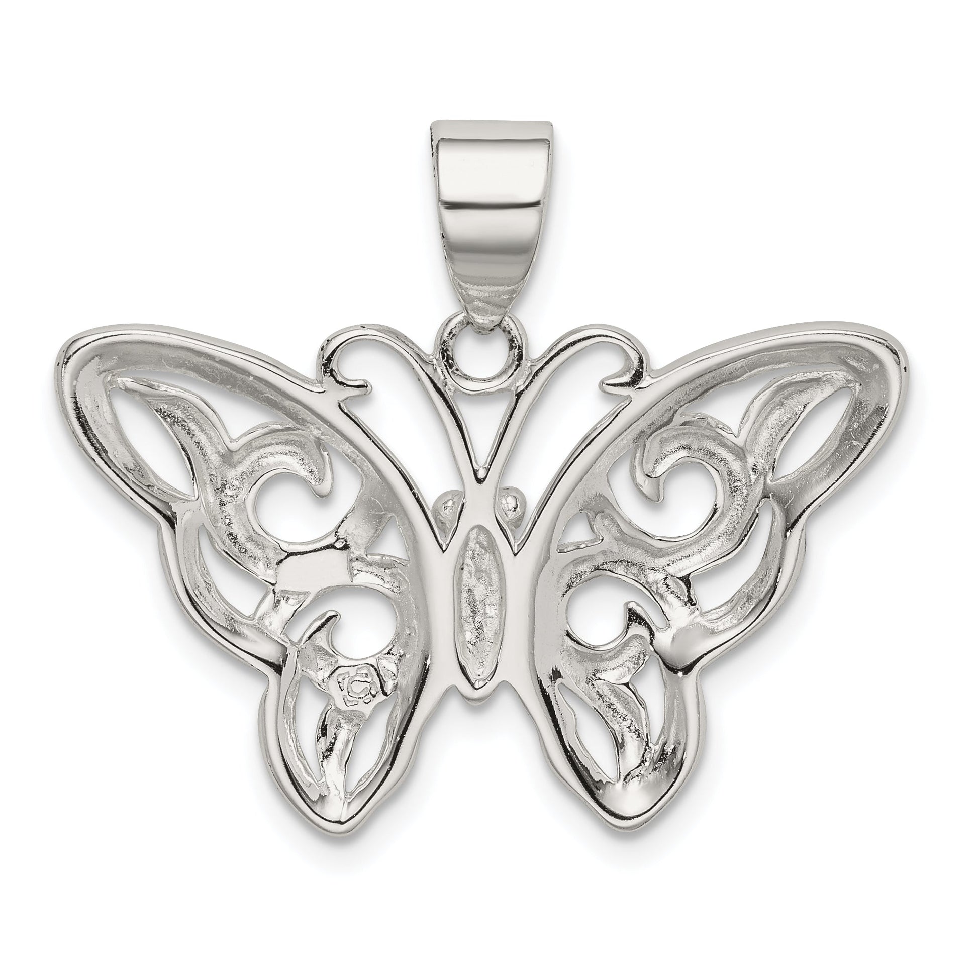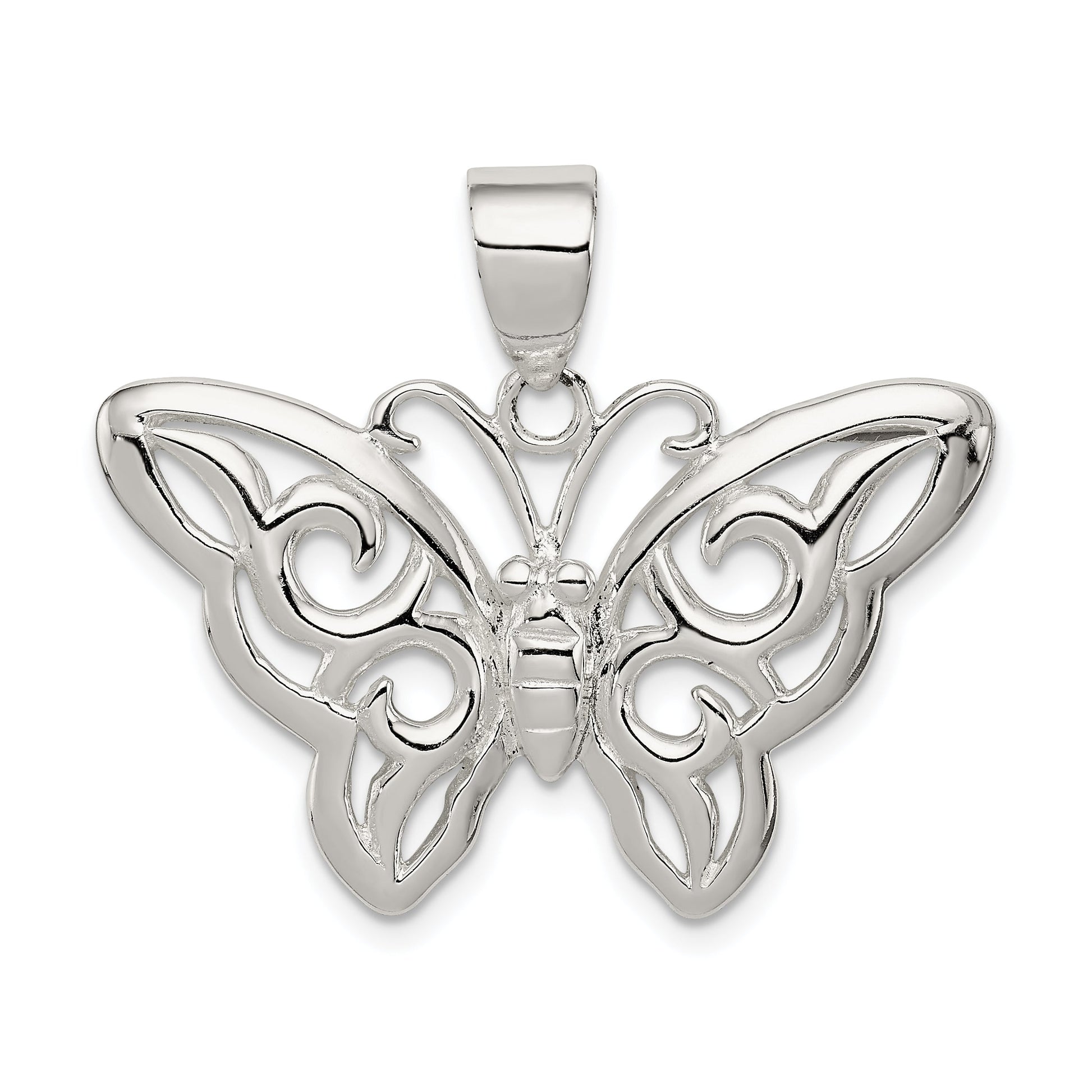 The Sterling Silver Butterfly Pendant captures nature's elegance in a beautifully crafted design. Made from high-quality 925 sterling silver, this piece exudes both grace and durability. Measuring 25 mm in length, with a charming width of 31 mm, the pendant features a lovely butterfly motif that adorns the piece delicately. An anti-tarnish coating ensures a long-lasting shine, while the solid casted manufacturing process guarantees its resilience. Designed for those who appreciate refined jewelry with a whimsical touch, the Sterling Silver Butterfly Pendant is a timeless addition to any collection.