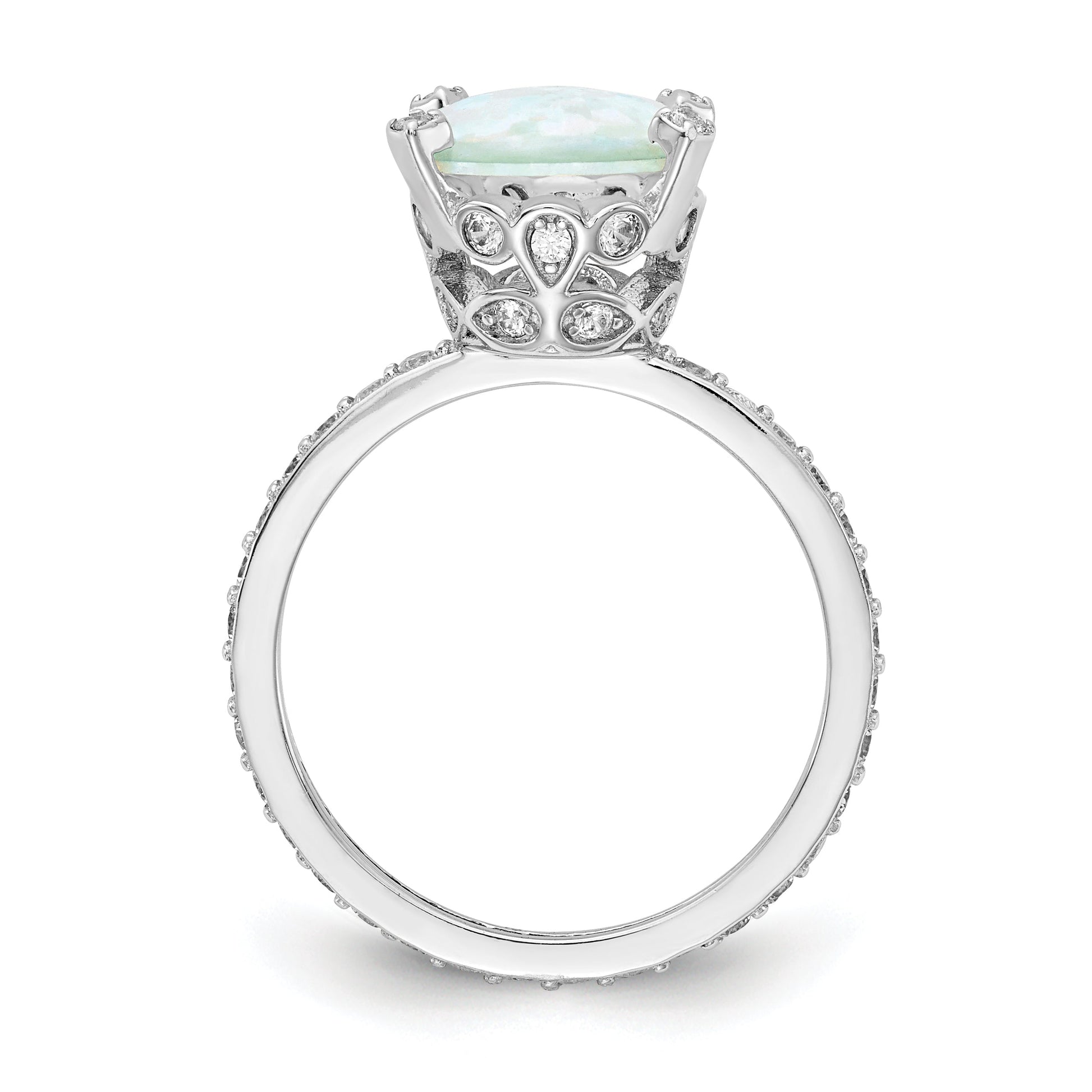 Discover the exquisite Sterling Silver Cheryl M Rhodium-Plated Cabochon Lab Created Opal And Brilliant-Cut CZ Oval Ring, perfectly crafted to make a statement. This stunning piece features a large lab-created opal, enhanced by 52 brilliant-cut cubic zirconias that gleam like diamonds. Made of polished 925 sterling silver, it boasts a rhodium coating for extra shine and durability. Its sleek band and oval stone design create a timeless elegance, making it an ideal piece for any occasion. The Cheryl M ring comes in a chic gift pouch, offering a stylish touch right out of the box.